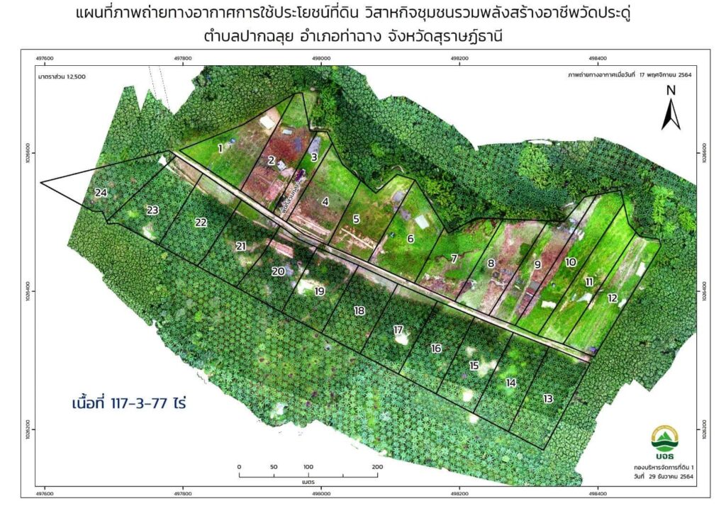 นายกุลพัชร ภูมิใจอวด ผู้อำนวยการ บจธ. เปิดเผยว่า ปัจจุบัน บจธ. ได้ให้การสนับสนุนวิสาหกิจชุมชนไปแล้ว 11 กลุ่มวิสาหกิจชุมชน และ 1 สหกรณ์การเกษตร ใน 5 ภูมิภาค ทุกกลุ่มวิสาหกิจชุมชนฯ ได้สร้างระบบการบริหารจัดการกลุ่มร่วมกัน มีการออมเงิน การวางแผนการผลิตและแผนการตลาด เพื่อให้เกิดความเข้มแข็งของกลุ่มเอง ทุนคนมีรายได้ มีคุณภาพชีวิตที่ดีขึ้น โดยยกตัวอย่างกลุ่มวิสาหกิจชุมชนที่ประสบความสำเร็จ ได้แก่ วิสาหกิจชุมชนรวมพลังสร้างอาชีพวัดประดู่ ต.ปากฉลุย อ.ท่าฉาง จ.สุราษฎร์ธานี จุดเด่นชุมชน “ชุมชนเข้มแข็ง แหล่งผลิตปาล์มน้ำมันที่สำคัญ ต้นแบบการบูรณาการร่วมกับท้องถิ่นอย่างเป็นรูปธรรม” สมาชิก 23 ครัวเรือน เนื้อที่ 117 ไร่เศษ
