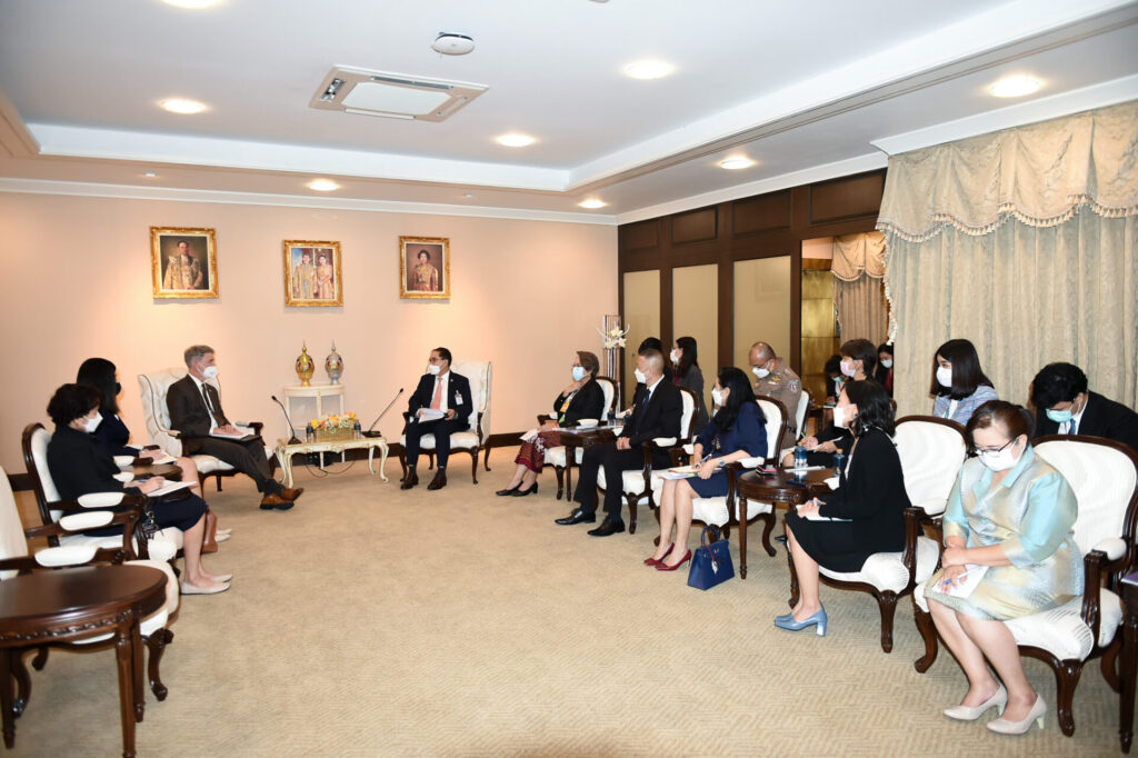 วันพุธที่ 23 กุมภาพันธ์ 2564 เวลา 14.00 น. ณ ตึกบัญชาการ 1 ทำเนียบรัฐบาล พล.อ.ประวิตร วงษ์สุวรรณ รองนายกรัฐมนตรี มีความห่วงใยปัญหาค้ามนุษย์ และมุ่งหวังดันประเทศไทยกลับขึ้นสู่สถานะ เทียร์ 2 ในการจัดลำดับ ตามรายงานสถานการณ์การต่อต้านการค้ามนุษย์ (TIP Report) จึงได้กำชับทุกหน่วยงานที่เกี่ยวข้องเร่งดำเนินการตามอำนาจหน้าที่ตามกฎหมายอย่างเต็มที่ พร้อมได้มอบหมายให้ พล.ต.อ.ดร.ธรรมศักดิ์ วิชชารยะ รองเลขาธิการนายกรัฐมนตรีฝ่ายการเมือง ในฐานะประธานคณะอนุกรรมการร่วมว่าด้วยการต่อต้านการค้ามนุษย์ ไทย – สหรัฐอเมริกา (ฝ่ายไทย) เป็นหัวหน้าคณะผู้แทนประเทศไทย ร่วมกับกระทรวงการต่างประเทศ สำนักงานตำรวจแห่งชาติ กระทรวงการพัฒนาสังคมและความมั่นคงของมนุษย์ กระทรวงแรงงาน ให้การต้อนรับ Mr.Adam West รักษาการที่ปรึกษาด้านการเมือง (Acting Political Counselor) สถานเอกอัครราชทูตสหรัฐอเมริกา ประจำประเทศไทย พร้อมด้วย Ms. Angeline Bickner (Political Affairs Associate) และคณะ ซึ่งเป็นผู้รับผิดชอบการจัดทำรายงานสถานการณ์การค้ามนุษย์ (TIP Report) เพื่อหารือความคืบหน้าการดำเนินงานด้านการป้องกันและปราบปรามการค้ามนุษย์ของประเทศไทย ฉบับปี 2564 และรายงานฉบับเพิ่มเติม ตั้งแต่เดือนมกราคม – มีนาคม 2565