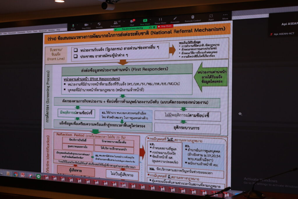 นอกจากนี้ ยังมีการจัดทำร่างขั้นตอนและแนวทางปฏิบัติที่ชัดเจน (SOP) ในการคัดกรองคัดแยกผู้เสียหายจากการบังคับใช้แรงงาน และกลไกการส่งต่อระดับชาติ (NRM) รวมทั้งการยกร่างระเบียบสำนักนายกรัฐมนตรีว่าด้วย การปฏิบัติที่ชัดเจนในการคัดแยกผู้เสียหายจากการค้ามนุษย์ทุกรูปแบบ ระยะเวลาไตร่ตรองฟื้นฟู การช่วยเหลือเบื้องต้นก่อนระบุตัวผู้เสียหาย ซึ่งจะต้องดำเนินการให้แล้วเสร็จภายใน มี.ค.65 และสนับสนุนมูลนิธิ IJM จัดทำวิจัย 2 โครงการ เพื่อศึกษาการตอบโต้กระบวนการยุติธรรมอาญาต่อปัญหาการค้ามนุษย์และ แรงงานบังคับในประเทศไทย เมียนมา กัมพูชา และศึกษาความเสี่ยงด้านความปลอดภัยและสุขภาพของแรงงานข้ามชาติชาว เมียนมาและกัมพูชาในประเทศไทย