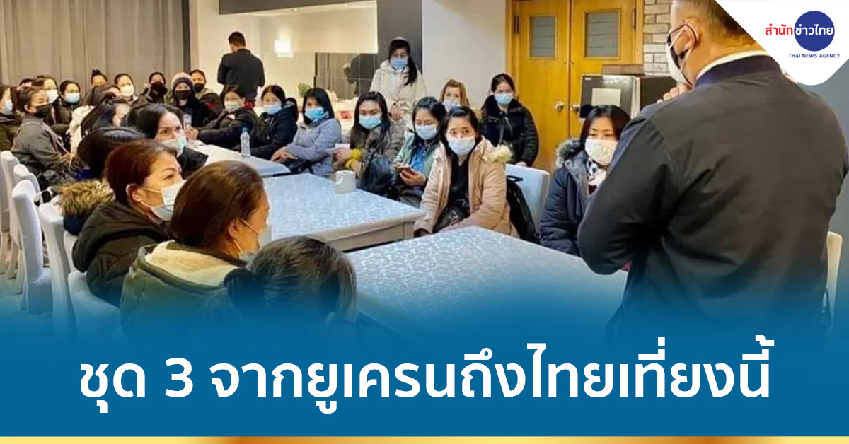 สถานเอกอัครราชทูตไทย ณ กรุงวอร์ซอรายงานความคืบหน้าการช่วยเหลือคนไทยในยูเครนในสถานการณ์ฉุกเฉิน ว่า วานนี้(2 มี.ค.) คณะคนไทยที่อพยพออกจากยูเครนชุดที่ 3 จำนวน 40 คนเดินทางออกจากประเทศโปแลนด์กลับโดยมีกำหนดถึงประเทศไทยในวันนี้(3 มี.ค.) เวลา 12.05 น.โดยสายการบินเอมิเรตส์ เที่ยวบินที่ EK384