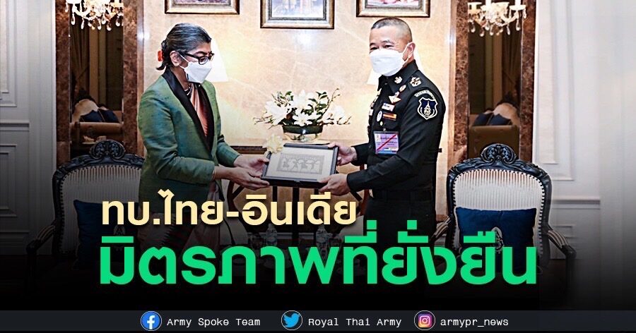 กองทัพบก 3 มี.ค.-ผบ.ทบ.ต้อนรับออท.อินเดีย ยินดีสองประเทศพัฒนาความร่วมมือต่อเนื่อง พร้อมแลกเปลี่ยนข้อมูลข่าวสารด้านมั่นคง ไซเบอร์ ภัยคุกคามรูปแบบใหม่ ยินดีสนับสนุนอุปกรณ์การแพทย์ระหว่างกันช่วงโควิด