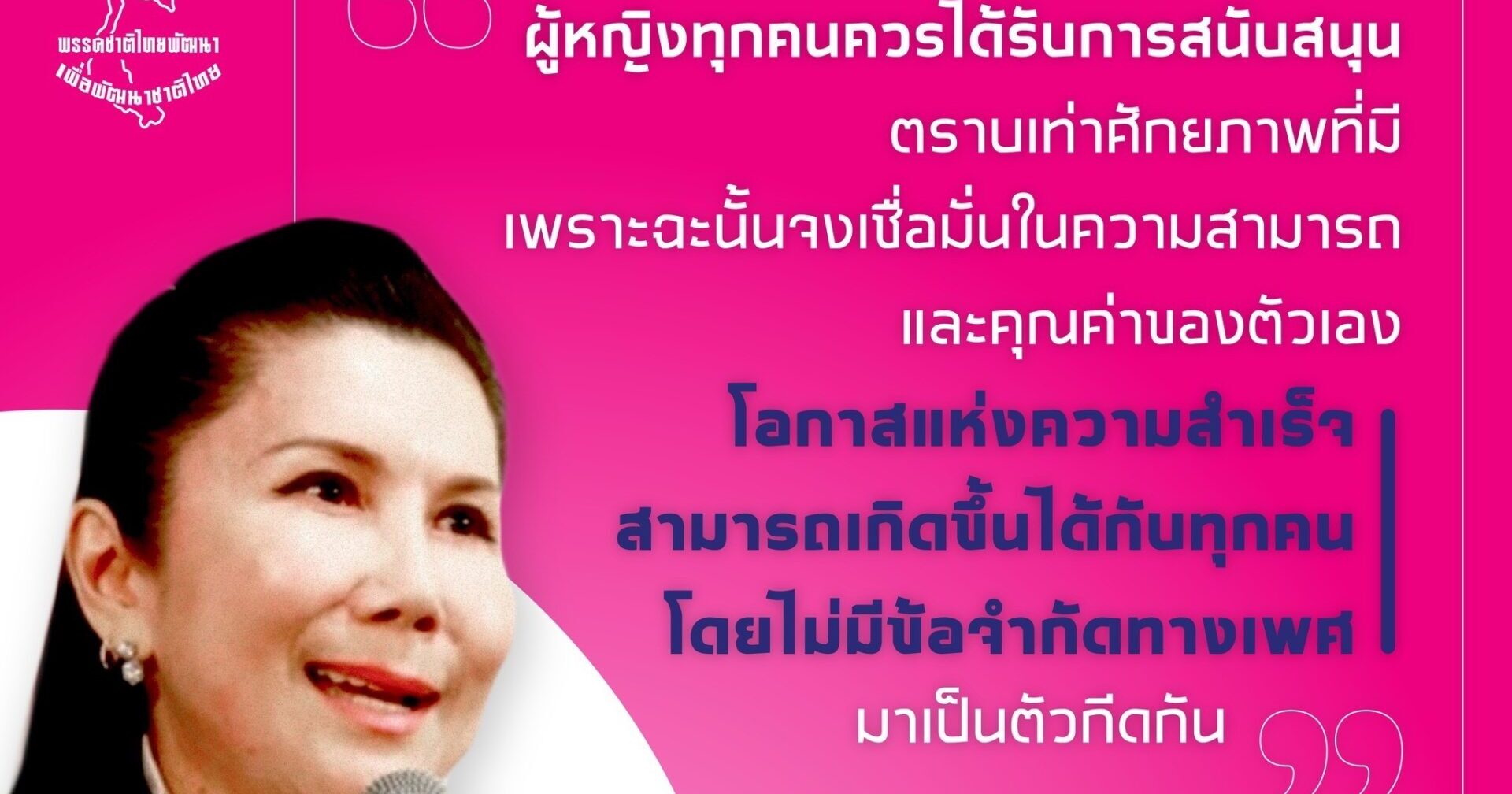 กรุงเทพฯ 8 มี.ค.-“กัญจนา” ย้ำพรรคชาติไทยพัฒนาเดินหน้าขับเคลื่อนให้สังคมไทยตระหนักถึงความสำคัญของเพศหญิง ความเท่าเทียมทางเพศทุกมิติ