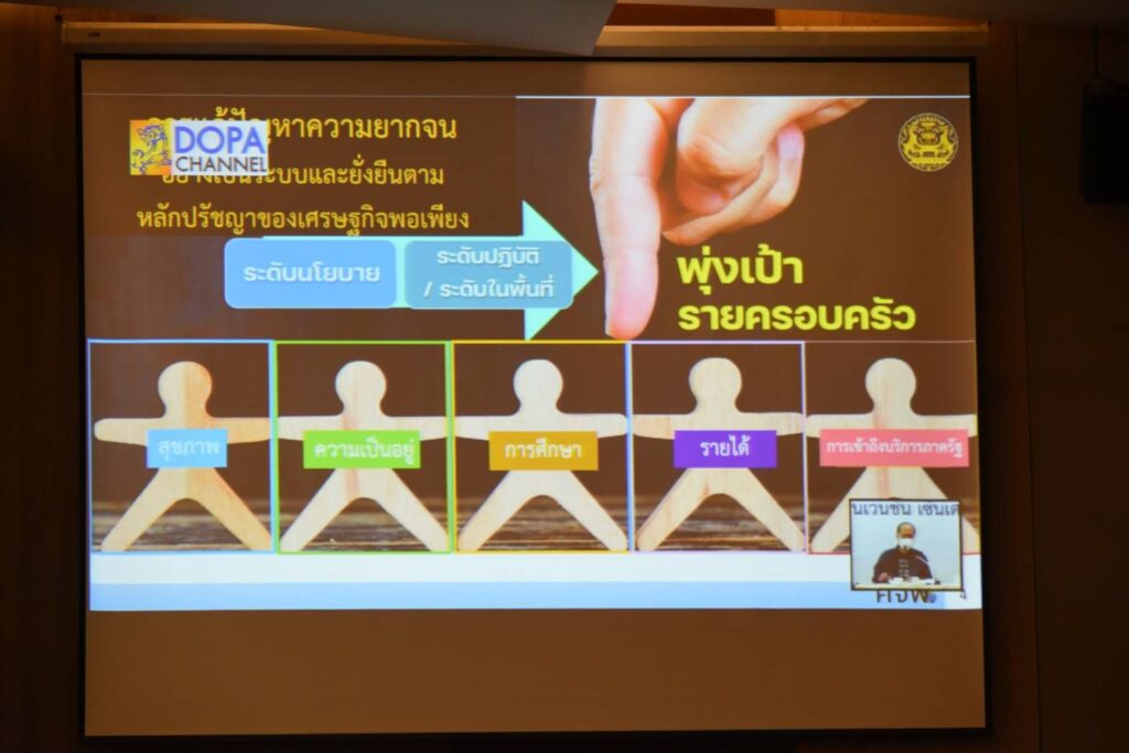 พลเอก อนุพงษ์ เผ่าจินดา กล่าวว่า รัฐบาลภายใต้การนำของ พลเอก ประยุทธ์ จันทร์โอชา นายกรัฐมนตรี ให้ความสำคัญในการแก้ไขปัญหาความยากจนให้กับพี่น้องประชาชน โดยไม่ทิ้งใครไว้ข้างหลัง เพราะประเทศของเรายังมีคนที่อ่อนด้อยในสังคม ที่อาจเรียกว่ากลุ่มอ่อนด้อย กลุ่มเปราะบาง เป็นต้น จึงเป็นจุดเริ่มต้นของการแก้ไขปัญหาความยากจนและพัฒนาคนทุกช่วงวัย ซึ่งไม่ได้หมายถึงเพียงแค่มิติด้านเศรษฐกิจ แต่หมายความรวมถึงความเดือดร้อนด้านต่าง ๆ ที่ประชาชนไม่สามารถแก้ไขได้ด้วยตนเอง มีเจตนาเพื่อให้ทุกคนมีชีวิตความเป็นอยู่ที่ดีขึ้น พ้นจากกับดักรายได้ปานกลาง เป็นที่มาของการขับเคลื่อนศูนย์อำนวยการขจัดความยากจนและพัฒนาคนทุกช่วงวัยอย่างยั่งยืนตามหลักปรัชญาของเศรษฐกิจพอเพียง (ศจพ.) มีเป้าหมายสำคัญ คือ “การแก้ปัญหาความยากจนแบบพุ่งเป้าแต่ละครัวเรือน” หรือ “การตัดเสื้อให้พอดีตัว” ด้วยเป้าเดียวกันจากข้อมูลในระบบบริหารจัดการข้อมูลการพัฒนาคนแบบชี้เป้า (Thai People Map and Analytics Platform) หรือ TPMAP มีแนวทางการแก้ปัญหา 5 ด้าน หรือ “5 เมนูแก้จน” ได้แก่ 1) สุขภาพ 2) ความเป็นอยู่ 3) การศึกษา 4) ด้านรายได้ 5) การเข้าถึงบริการภาครัฐ โดยกลไกตั้งแต่ระดับนโยบายถึงระดับปฏิบัติในพื้นที่ ได้แก่ ระดับจังหวัด ผ่านศูนย์อำนวยการขจัดความยากจนและพัฒนาคนทุกช่วงวัยอย่างยั่งยืนตามหลักปรัชญาของเศรษฐกิจพอเพียงจังหวัด (ศจพ.จ.) ระดับอำเภอ ผ่านศูนย์อำนวยการปฏิบัติการฯ อำเภอ (ศจพ.อ.) และระดับปฏิบัติการ ผ่านทีมปฏิบัติการฯ ในระดับพื้นที่ (ทีมตำบล) โดยมี “ทีมพี่เลี้ยง” ลงพื้นที่เข้าไปรับทราบปัญหา วิเคราะห์ และหาแนวทางการแก้ไขชั้นต้น ตามหลัก 4 ท คือ ทัศนคติ ทักษะ ทรัพยากร และทางออก รวบรวมและสรุปสภาพปัญหารายงานไปยังทีมตำบล และ ศจพ.อำเภอ เพื่อหาแนวทางการแก้ปัญหา และลงไปแก้ปัญหาความเดือดร้อน พร้อมต้องติดตามการแก้ไขปัญหาอย่างใกล้ชิดต่อเนื่องในลักษณะ Intensive care ด้วยการมีส่วนร่วมของครัวเรือนว่าอยากทำอะไร ไม่ใช่เป็นการไปบังคับให้ทำ เมื่อพี่น้องประชาชนครัวเรือนเป้าหมายร่วมคิด ร่วมทำ โดยภาครัฐร่วมสนับสนุน แม้ว่าผลอาจจะไม่สมบูรณ์ 100% แต่ก็ทำให้ครัวเรือนได้ทราบแนวทางและวิธีการที่จะทำให้คุณภาพชีวิตดีขึ้น ซึ่งต้องบันทึกข้อมูลใน Logbook ทุกครั้งที่ได้ให้ความช่วยเหลือและพัฒนา เพื่อจะได้มีข้อมูล (Big Data) ในการวิเคราะห์ภาพรวมสภาพปัญหาและแนวทางแก้ไขในอนาคตให้เกิดความยั่งยืนต่อไป