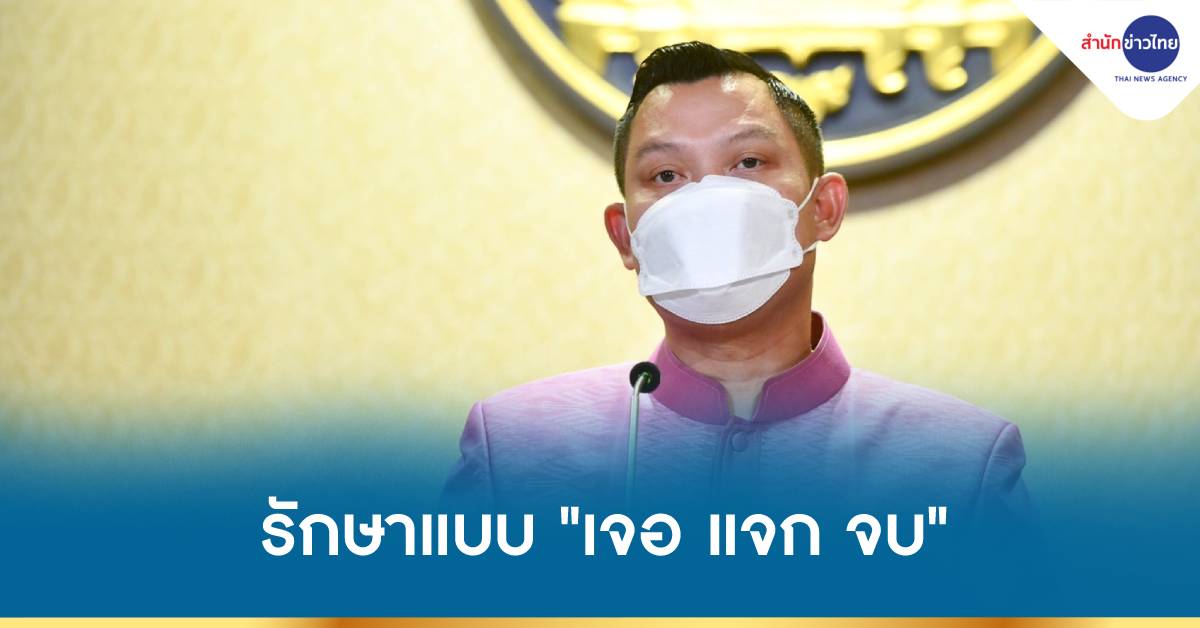 โฆษกรัฐบาลยังกล่าวด้วยว่า การรักษาผู้ติดเชื้อโควิด-19 แบบผู้ป่วยนอกและแยกกักที่บ้าน “เจอ แจก จบ” เป็นทางเลือกในการรับบริการ นอกเหนือจากการดูแลที่บ้านหรือชุมชน (HI/CI) รวมทั้งให้โรงพยาบาลใน 14 จังหวัดรอบ กทม. เพิ่มกำลังการบริการในคลินิกโรคทางเดินหายใจแบบผู้ป่วยนอก “เจอ แจก จบ” ด้วย เพื่อช่วยดูแลผู้ติดเชื้อโควิด-19 กลุ่มสีเขียวในพื้นที่ กทม. ที่ยังตกค้าง