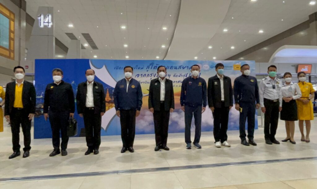 พล.อ. ประยุทธ์ จันทร์โอชา นายกรัฐมนตรีและรัฐมนตรีว่าการกระทรวงกลาโหม พร้อมด้วยนายอนุทิน ชาญวีรกูล รองนายกรัฐมนตรีและรัฐมนตรีว่าการกระทรวงสาธารณสุข นายศักดิ์สยาม ชิดชอบ รัฐมนตรีว่าการกระทรวงคมนาคม พล.อ.อนุพงษ์ เผ่าจินดา รัฐมนตรีว่าการกระทรวงมหาดไทย ออกเดินทางจากท่าอากาศยานดอนเมือง กรุงเทพฯ เพื่อเป็นประธานในพิธีเปิด “เที่ยวบินปฐมฤกษ์ ท่าอากาศยานนานาชาติเบตง จังหวัดยะลา” ณ อาคารที่พักผู้โดยสาร ท่าอากาศยานเบตง อำเภอเบตง จังหวัดยะลา โดยก่อนออกเดินทาง นายกรัฐมนตรี และคณะได้ถ่ายภาพร่วมกับผู้บริหาร