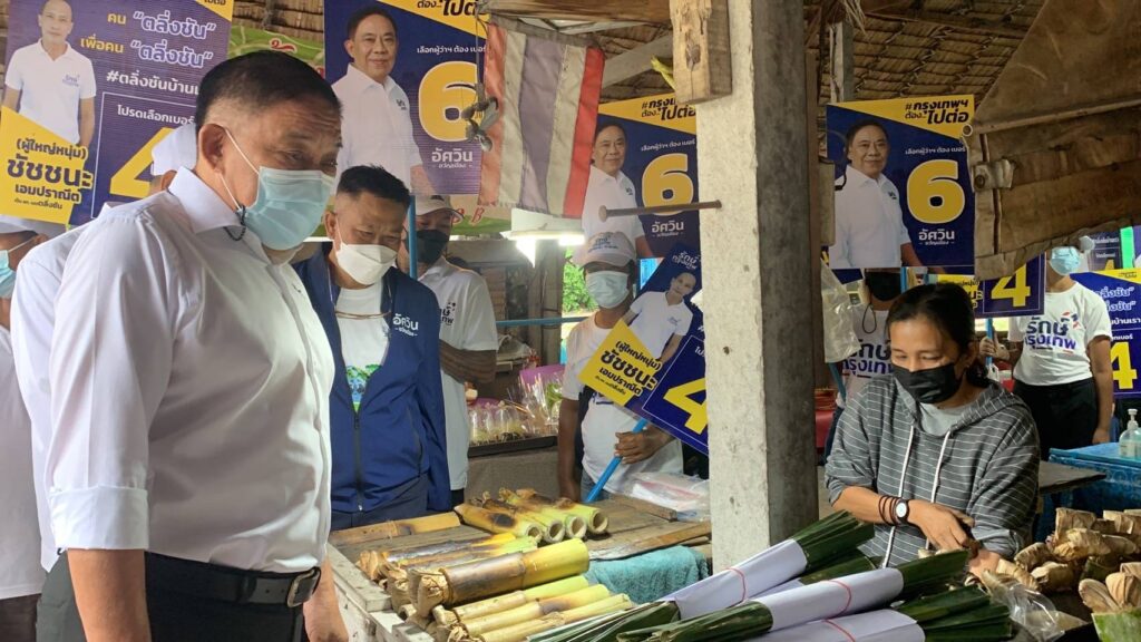 พล.ต.อ.อัศวิน ขวัญเมือง ผู้สมัครผู้ว่าฯ กทม. หมายเลย 6 พร้อมทีมผู้สมัคร ส.ก.เขตตลิ่งชัน นายชัชชนะ เอมปราณีต หมายเลข 4 พร้อมทีมงาน ได้เดินพบประพูดคุยกับบรรดาพ่อค้า แม่ค้า และประชาชนที่มาเดินเที่ยวตลาดน้ำคลองลัดมะยม ในช่วงวันหยุดโดยได้แวะพูดคุยถามไถ่ความเป็นอยู่การค้าขาย และให้กำลังใจพ่อค้าแม่ค้าที่ต้องเจอผลกระทบในช่วงวิกฤติโควิดที่ผ่านมา พร้อมทั้งขอกำลังใจในการสู้ศึกเลือกตั้งผู้ว่าฯ จากพี่น้องประชาชนที่มาจับจ่ายซื้อของอีกด้วย