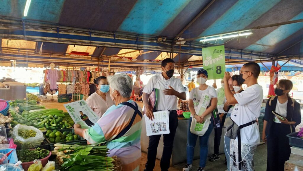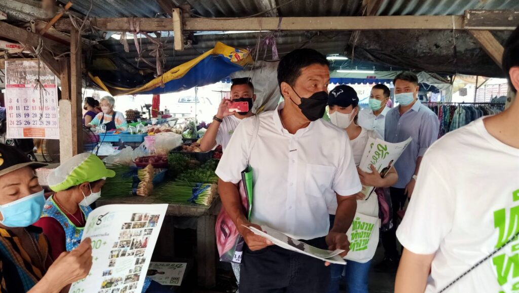นายชัชชาติ สิทธิพันธุ์ ผู้สมัครผู้ว่าฯ กทม. หมายเลข 8 ลงพื้นที่หาเสียงบริเวณตลาดบางแค และตลาดศิริเกษม ย่านพุทธมณฑลสาย 3 เพื่อสำรวจสภาพเศรษฐกิจ ปากท้องชาวบ้าน และการบริหารจัดการตลาดภายใต้การบริหารของ กทม.