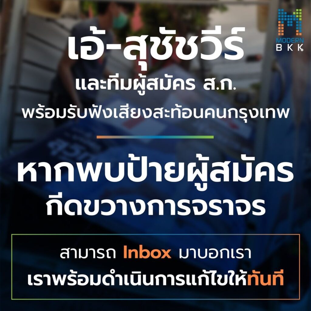 ทั้งนี้ที่ผ่านมามีผู้ Inbox แจ้งข้อมูลเรื่องป้ายหาเสียงผ่านมาทางเพจ Modern BKK เมื่อแอดมินเพจรับเรื่องก็ส่งต่อให้ผู้สมัครเพื่อดำเนินการแก้ไข โดยมิได้นิ่งนอนใจ จนได้รับคำขอบคุณว่าทำงานได้อย่างรวดเร็ว