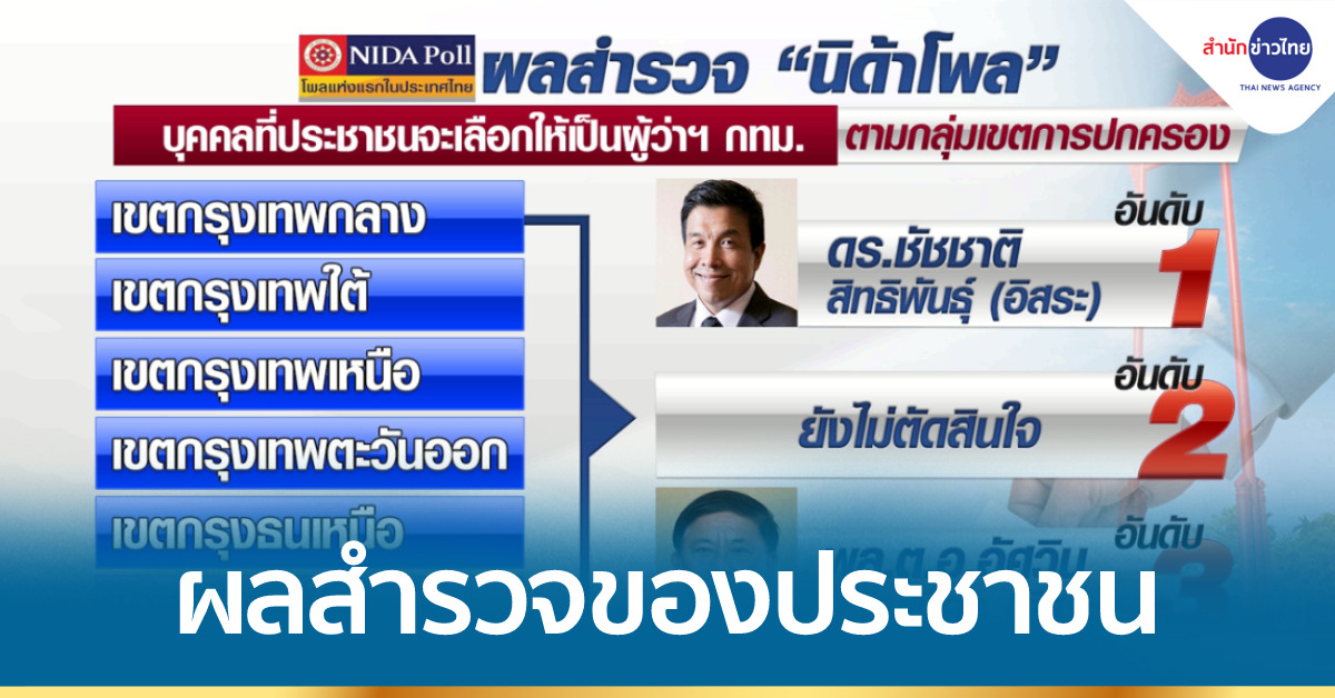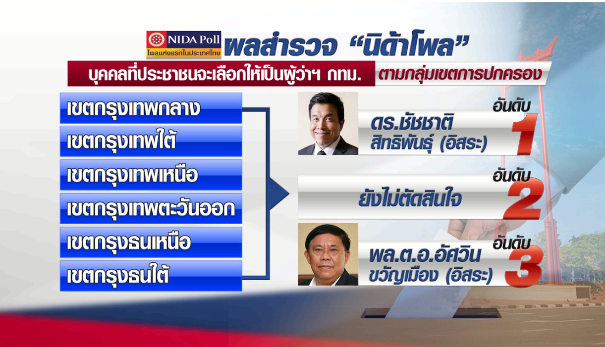 จากการสำรวจ พบว่าบุคคลที่ประชาชนจะเลือกให้เป็นผู้ว่าฯ กทม.