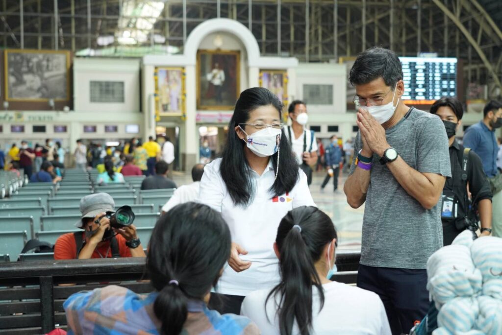หัวลำโพง 12 เม.ย. – “ศิธา” ลงพื้นที่หัวลำโพง ส่งประชาชนกลับภูมิลำเนา ระบุแม้เป็นประชากรแฝงก็ต้องได้รับการดูแลอย่างดี ด้าน คุณหญิงสุดารัตน์ มอง “พล.อ.ประวิตร” ขึ้นป้ายสวัสดีปีใหม่ไทย มีนัยยะปูทางสู่การเสนอตัวเป็นนายกรัฐมนตรี