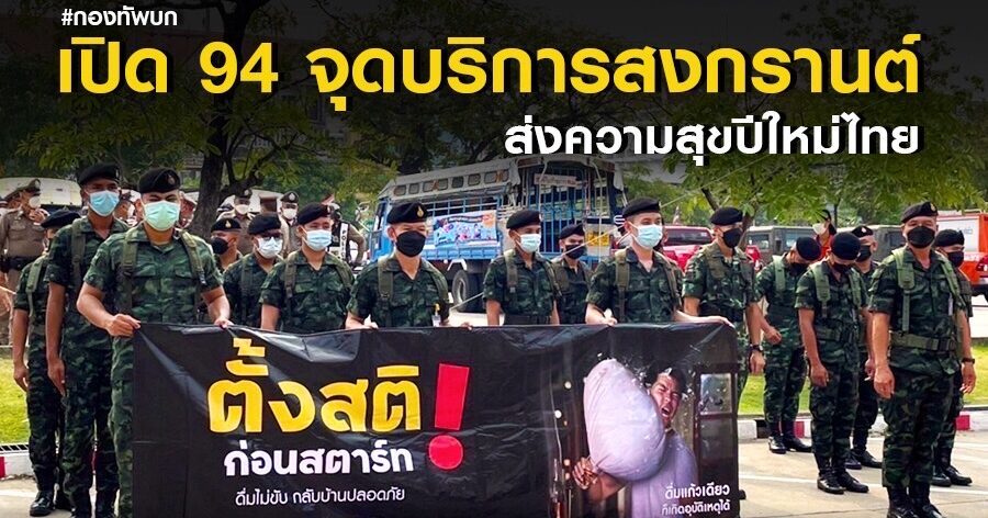 กองทัพบก 12 เม.ย.-ผบ.ทบ. สั่งหน่วยทหารทั่วปท.หนุนส่วนราชการเปิด 94 จุดบริการอำนวยความสะดวกประชาชนเดินทางช่วงสงกรานต์ ลดอุบัติเหตุ ป้องกันโควิด-19