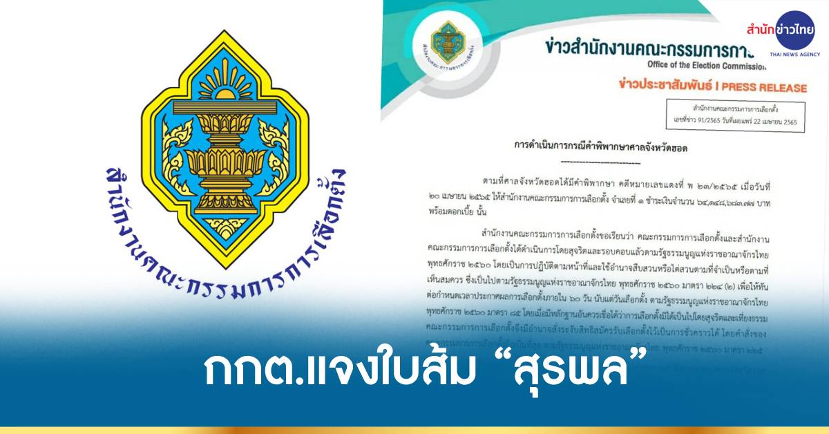 สำนักงานคณะกรรมการการเลือกตั้งออกเอกสารข่าวชี้แจง หลังศาลจังหวัดฮอดมีคำพิพากษา ให้สำนักงาน กกต. ชำระเงินให้นายสุรพล เกียรติไชยากร ผู้สมัคร ส.ส.เขต 8 เชียงใหม่ พรรคเพื่อไทย ว่าคณะกรรมการการเลือกตั้งและสำนักงาน กกต. ดำเนินการโดยสุจริตและรอบคอบแล้ว ตามรัฐธรรมนูญ 2560 โดยเป็นการปฏิบัติตามหน้าที่และใช้อำนาจสืบสวนหรือไต่สวน ตามที่จำเป็นหรือตามที่เห็นสมควร ซึ่งเป็นไปตามรัฐธรรมนูญ มาตรา 224 ( 2 ) เพื่อให้ทันต่อกำหนดเวลาประกาศผลการเลือกตั้งภายใน 60 วัน นับแต่วันเลือกตั้ง ตามรัฐธรรมนูญ มาตรา 85 โดยเมื่อมีหลักฐานอันควรเชื่อได้ว่าการเลือกตั้งมิได้เป็นไปโดยสุจริตและเที่ยงธรรม คณะกรรมการการเลือกตั้งจึงมีอำนาจสั่งระงับสิทธิสมัครรับเลือกตั้งไว้เป็นการชั่วคราวได้ โดยคำสั่งของคณะกรรมการการเลือกตั้งถือเป็นที่สุด ตามรัฐธรรมนูญ มาตรา 225