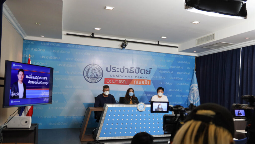 ทีมรอง ผอ.ศูนย์อำนวยการเลือกตั้ง กทม. และ ส.ก. พรรคประชาธิปัตย์ ประกอบด้วย นายณัฏฐ์ บรรทัดฐาน นางดรุณวรรณ ชาญพิพัฒนชัย และ ดร.ธนวัฒน์ ปัญญาสกุลวงศ์ ร่วมกันแถลงข่าวถึงความคืบหน้าเกี่ยวกับการขับเคลื่อนของศูนย์อำนวยการเลือกตั้ง โดยมี พล.ต.ต.วิชัย สังข์ประไพ เข้าร่วมรับฟังการแถลงข่าวด้วย