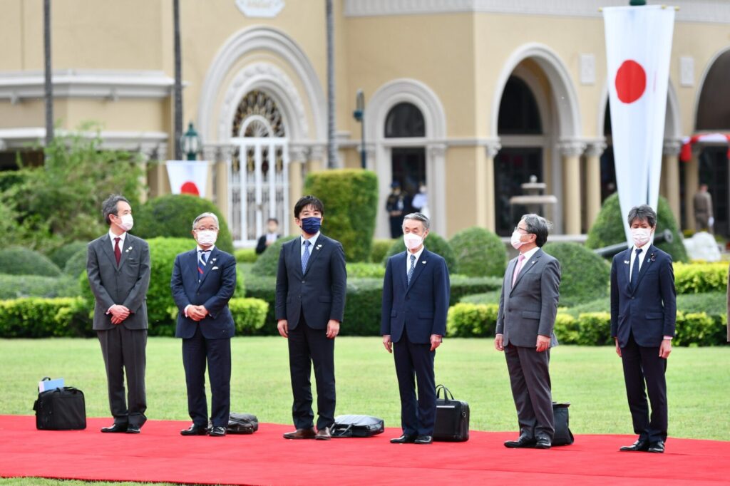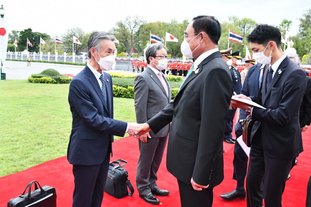 พร้อมทั้งมีพิธีเดินตรวจแถวทหารกองเกียรติยศ จากนั้นผู้นำทั้งสองประเทศพร้อมคณะ ได้หารือข้อราชการ และหารือถึงสถานการณ์ต่างประเทศที่สนใจร่วมกัน จากนั้นร่วมเป็นสักขีพยานในพิธีลงนามความตกลง 3 ฉบับ ได้แก่ 1. หนังสือแลกเปลี่ยนว่าด้วยความร่วมมือทางการเงินระหว่างรัฐบาลไทยกับรัฐบาลญี่ปุ่น 2. ความตกลงว่าด้วยการมอบยุทโธปกรณ์และเทคโนโลยีป้องกันประเทศระหว่างรัฐบาลประเทศญี่ปุ่นกับรัฐบาลแห่งราชอาณาจักรไทย 3. หนังสือแลกเปลี่ยนว่าด้วยความช่วยเหลือแบบให้เปล่าของรัฐบาลญี่ปุ่นภายใต้โครงการสนับสนุนเร่งด่วนสำหรับการรับมือกับสถานการณ์โควิด-19