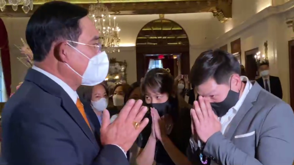 ทันทีที่นายกรัฐมนตรีเดินทางถึงที่พัก มีทีมไทยแลนด์และคนไทยส่วนหนึ่งมาให้การต้อนรับ โดยนายกรัฐมนตรีได้ทักทายและกล่าวว่า รู้สึกยินดีที่ได้เจอคนไทยทุกคนที่ทำงานอยู่ที่สหรัฐฯ ขณะเดียวกัน ผู้ประกอบการร้านอาหารไทยที่มารอให้การต้อนรับ ได้มอบดอกไม้ให้กำลังใจในการทำงาน พร้อมระบุถึงข้อเสนอของผู้ประกอบการร้านอาหารไทยในกรุงวอชิงตัน ซึ่งได้ขอความช่วยเหลือจากรัฐบาลด้านการสนับสนุนแรงงาน ทั้งการขอวีซ่าและแรงงานที่เข้ามาทำงานอย่างผิดกฎหมาย โดยนายกรัฐมนตรีได้สั่งการให้นายดอน ปรมัตถ์วินัย รองนายกรัฐมนตรีและรัฐมนตรีว่าการกระทรวงการต่างประเทศ และนายมนัสวี ศรีโสดาพล เอกอัครราชทูต ณ กรุงวอชิงตัน รับเรื่องของผู้ประกอบการไปพิจารณาให้ความช่วยเหลือต่อไป. – สำนักข่าวไทย
