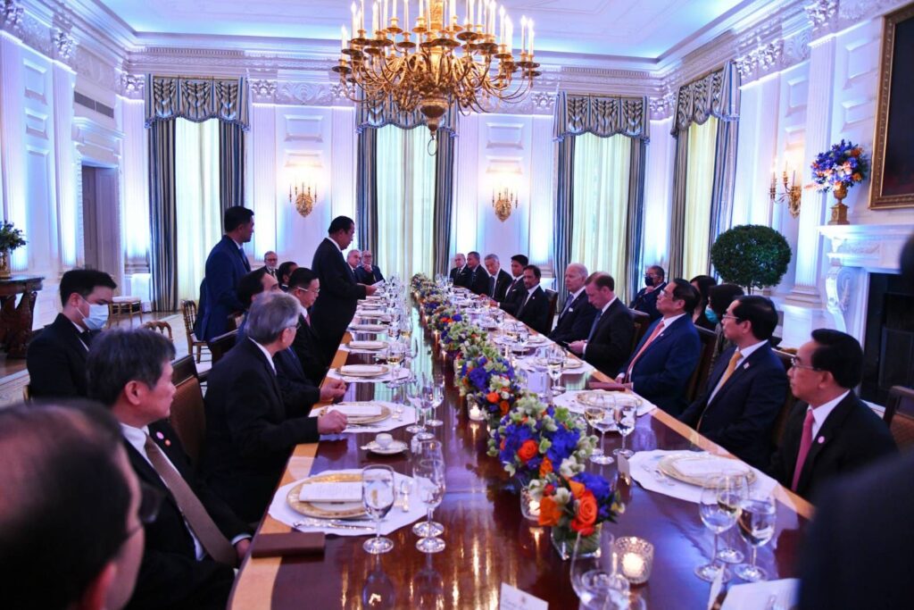 วันนี้ (12 พฤษภาคม 2565) เวลา 18.00 น. ณ ทำเนียบประธานาธิบดีแห่งสหรัฐอเมริกา ประธานาธิบดีแห่งสหรัฐอเมริกาเป็นเจ้าภาพงานเลี้ยงอาหารค่ำเพื่อเป็นเกียรติแก่ผู้นำอาเซียน โดยสาระสำคัญที่พลเอก ประยุทธ์ จันทร์โอชา นายกรัฐมนตรีและรัฐมนตรีว่าการกระทรวงกลาโหม ได้กล่าวกับประธานาธิบดีสหรัฐ และผู้นำประเทศสมาชิกอาเซียน