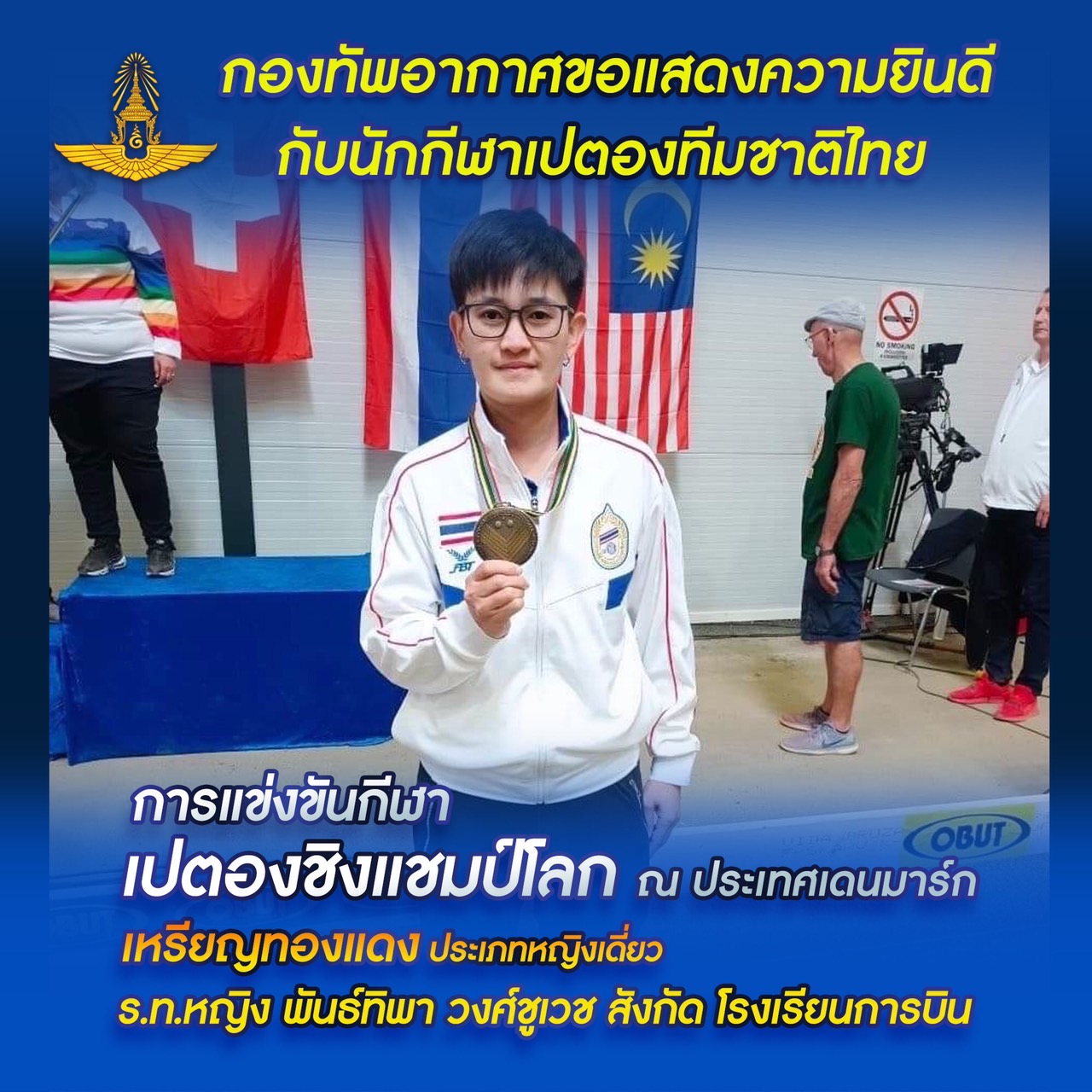 กองทัพอากาศ 18 พ.ค.-ผบ.ทอ.แสดงความยินดีนักกีฬาเปตองทีมชาติไทย สังกัดกองทัพอากาศ คว้าแชมป์โลกคู่ผสมสมัยที่ 2 เหรียญทองแดง ประเภทหญิงเดี่ยว กีฬาเปตองชิงแชมป์โลก 2022 ที่เดนมาร์ก