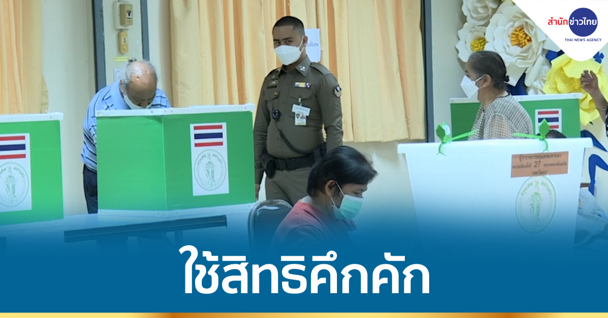 ด้านโฆษกรัฐบาล ธนกร วังบุญคงชนะ พาภรรยามาเลือกตั้ง แต่ตัวเองไม่ได้มาเลือกตั้ง เพราะทะเบียนบ้านอยู่นนทบุรี ก็ยังเชิญชวนให้ใช้มาสิทธิ์กัน.-สำนักข่าวไทย