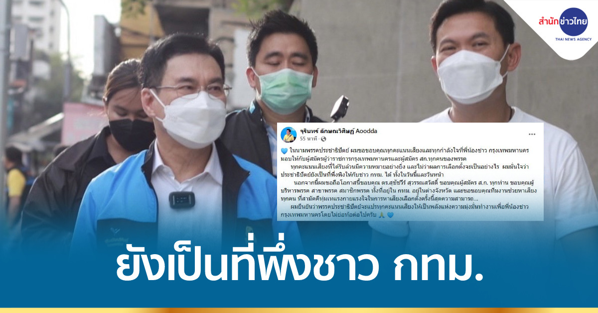 กรุงเทพฯ 22 พ.ค. – “จุรินทร์” โพสต์ขอบคุณทุกคะแนนเสียงจากชาว กทม. มั่นใจ ปชป. ยังเป็นที่พึ่งของคน กทม. ได้ ทั้งวันนี้และวันหน้า