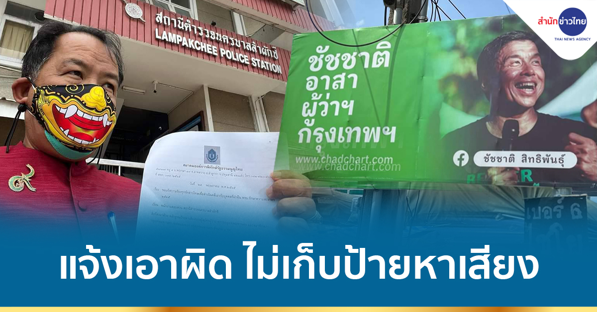 วันนี้ (29 พ.ค.) นายศรีสุวรรณ จรรยา เลขาธิการสมาคมองค์การพิทักษ์รัฐธรรมนูญไทย เปิดเผยว่า ได้เดินทางมายังสถานีตำรวจนครบาลลำผักชี (สน.ลำผักชี) แจ้งความร้องทุกข์กล่าวโทษว่าที่ผู้ว่าฯ กทม. และผู้สมัครผู้ว่าราชการ กทม. รวมถึงผู้สมัคร ส.ก.เขตหนองจอก ไม่ยอมเก็บป้ายหาเสียงของตนเองออกจากพื้นที่สาธารณะตามที่ กกต.กำหนดภายใน 3 วันหลังจากเลือกตั้ง อันถือได้ว่ามีความผิดฐานตาม ปอ.368 ฐานขัดคำสั่งเจ้าพนักงาน และมีความผิดตาม พ.ร.บ.รักษาความสะอาดฯ 2535
