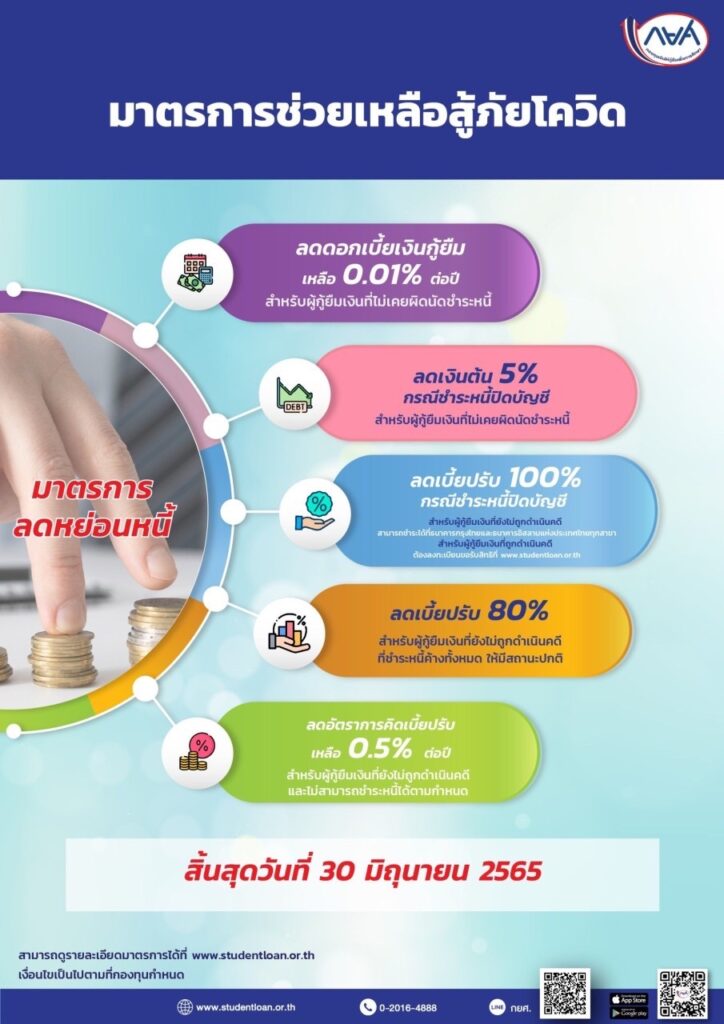 น.ส.ไตรศุลี ไตรสรณกุล รองโฆษกประจำสำนักนายกรัฐมนตรี กล่าวว่า จากที่กองทุนเงินให้กู้ยืมเพื่อการศึกษา หรือ กยศ.ได้มีมาตรการลดหย่อนหนี้ เพื่อเป็นการช่วยเหลือและให้โอกาสผู้กู้ยืมเงินที่ได้รับผลกระทบทางเศรษฐกิจจากสถานการณ์โรคติดเชื้อไวรัสโคโรนา 2019 หรือโควิด19 ซึ่งได้ขยายระยะเวลามาแล้ว 1 ครั้งและจะสิ้นสุดระยะเวลาที่ขยายในวันที่ 30 มิ.ย. 2565 รัฐบาลจึงขอเชิญชวนผู้กู้ยืมที่อยู่ระหว่างการชำระหนี้ ติดต่อเพื่อรับประโยชน์จากมาตรการก่อนระยะเวลาดังกล่าวจะสิ้นสุดลง
