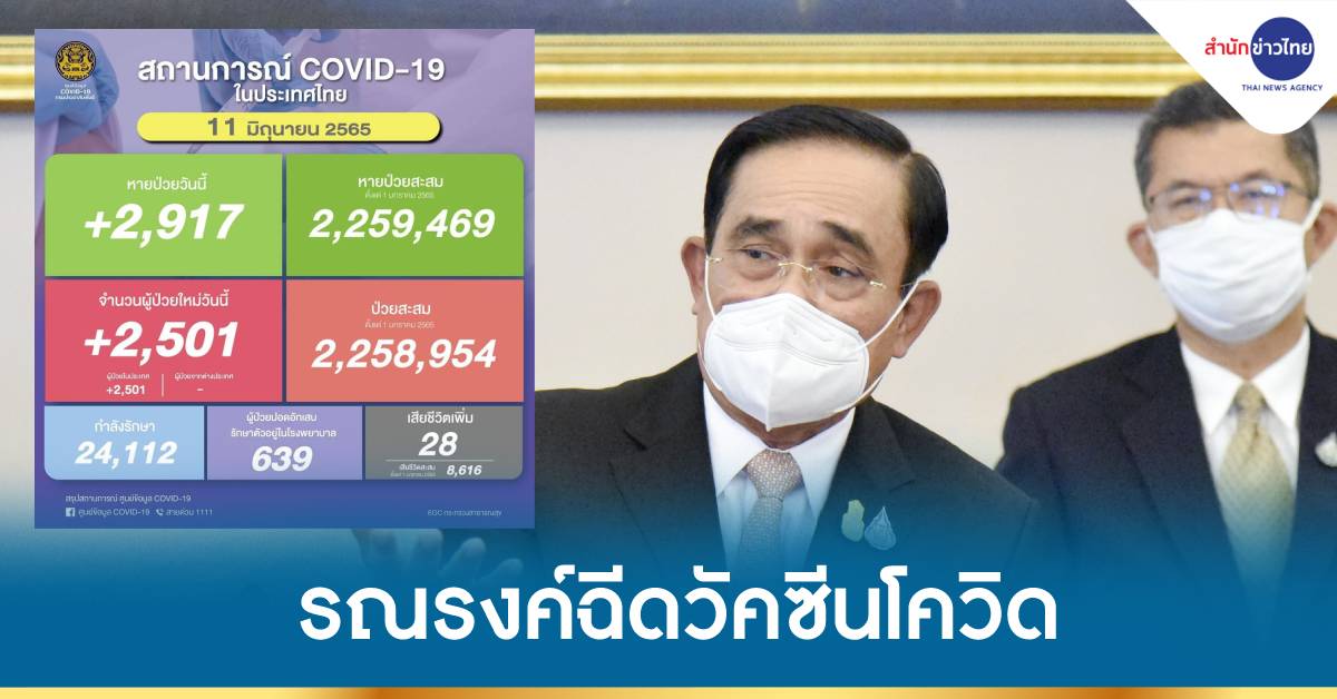 ทำเนียบ 11 มิ.ย.-นายกฯ แนะจังหวัดที่ผู้ติดเชื้อโควิด-19 ในพื้นที่ยังสูง เข้มมาตรการป้องกัน-คัดกรอง รณรงค์ฉีดวัคซีน เน้นย้ำดูแลกลุ่มเสี่ยง 608 เป็นกรณีพิเศษ ขณะที่ยอดผู้ติดเชื้อวันนี้ 2,501 ราย