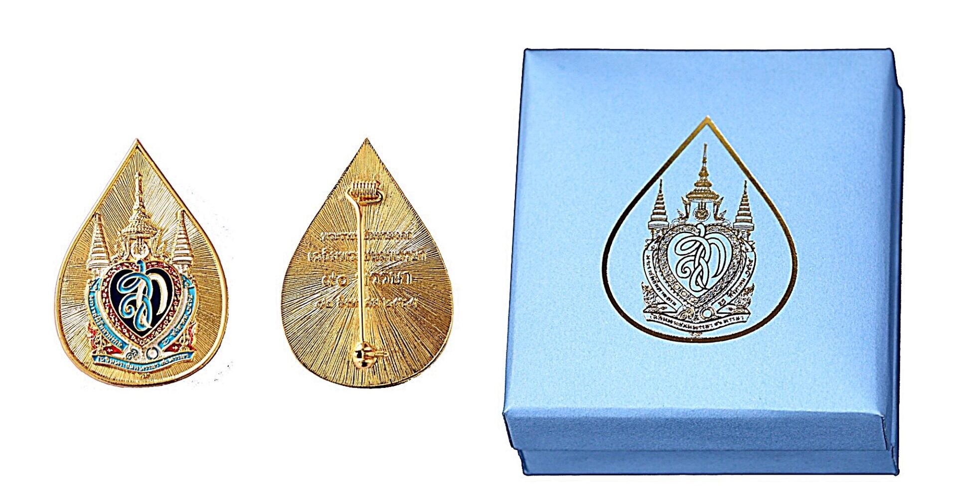 ทั้งนี้ เข็มที่ระลึกฯ จัดทำด้วยวัสดุทองเหลือง แข็งแรงทนทาน ขึ้นรูปแบบตามตราสัญลักษณ์พระราชพิธีมหามงคลเฉลิมพระชนมพรรษา 90 พรรษา 12 สิงหาคม 2565 ขนาดความสูงประมาณ 4 x 2.7 เซนติเมตร ชุบทองด้านหน้าและหลัง พื้นด้านหน้าและหลังเป็นลายรัศมี ขอบสีทอง อักษรพระนามาภิไธย ส.ก. ลงยา ตัวอักษร “ส” สีฟ้า ตัวอักษร “ก” สีขาว กรอบรูปหัวใจ ขอบสีทอง ลงยาสีแดง พื้นลงยาสีน้ำเงิน ด้านบนเป็นพระมหามงกุฎ ภายในประดิษฐานพระแสงจักรและพระแสงตรี ขนาบซ้าย ขวา พระมหามงกุฎด้วยพระสัปตปฎลเศวตฉัตร ฉัตรขาว 7 ชั้น รูปลายหงส์ประคองฉัตร ซ้าย ขวา เลขไทย “๙๐” ลงยาสีฟ้า ภายใต้มาลัยหัวใจ ผ้าแพรแถบสีฟ้าอักษรบอกชื่องาน “พระราชพิธีมหามงคลเฉลิมพระชนมพรรษา ๙๐ พรรษา ๑๒ สิงหาคม ๒๕๖๕” ด้านหลัง จารึกตัวอักษร “พระราชพิธีมหามงคลเฉลิมพระชนมพรรษา ๙๐ พรรษา ๑๒ สิงหาคม ๒๕๖๕” เข็มกลัดด้านหลังพร้อมหัวล็อกใช้วัสดุทองเหลืองชุบทอง กล่องบรรจุจัดทำด้วยกระดาษอาร์ตอัดลาย ความหนา 120 แกรม เคลือบสีฟ้า หุ้มพลาสติกขึ้นรูปทรงกล่อง ขนาดความสูงประมาณ 6.3 x 6.7 x 2.8 เซนติเมตร ฝากล่องด้านบนประดับด้วยตราสัญลักษณ์พระราชพิธีมหามงคลเฉลิมพระชนมพรรษา 90 พรรษา 12 สิงหาคม 2565 พิมพ์ด้วยสีทอง ด้านข้างในกล่องเป็นสีขาวงาช้าง