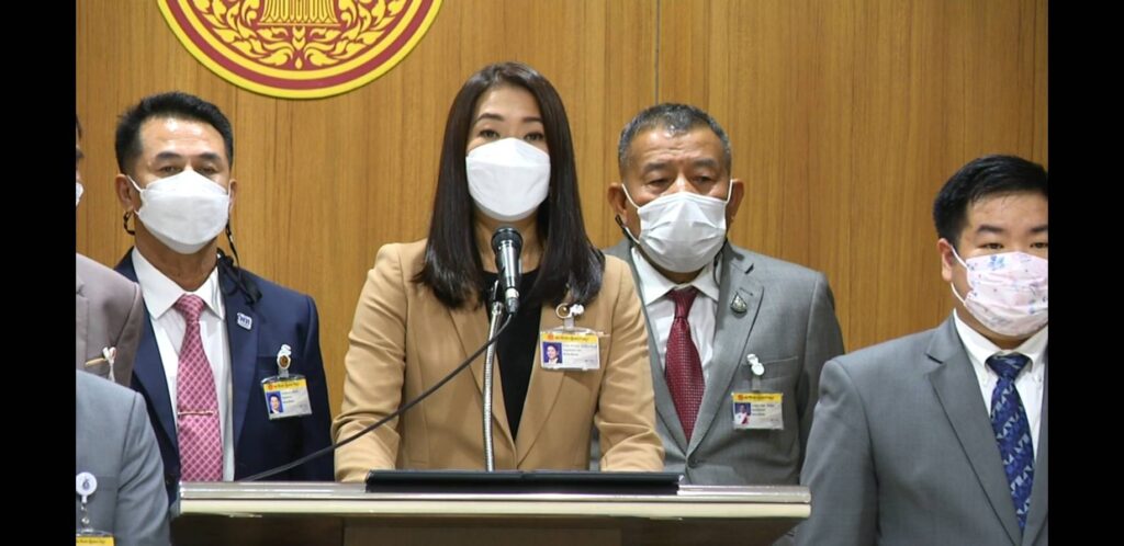 ด้าน น.ส.ธีรรัตน์ สำเร็จวาณิชย์ โฆษกพรรคเพื่อไทย กล่าวว่า เมื่อมีการยกเลิก พ.ร.ก.ฉุกเฉินแล้ว รัฐบาลยังมี พ.ร.บ.ควบคุมโรคที่จะใช้เป็นเครื่องมือในการควบคุมการแพร่ระบาดของโควิด-19 ได้ ซึ่งการยกเลิก พ.ร.ก.ฉุกเฉิน จะสร้างความเชื่อมั่นและสร้างบรรยากาศการท่องเที่ยวและการลงทุน นายกฯ จึงต้องประกาศยกเลิกทันทีตามเจตนารมย์ของกฎหมาย เพราะการยังคงข้อห้ามชุมนุมทางการเมืองไว้ ไม่เป็นไปตามวัตถุประสงค์ของการประกาศใช้ พ.ร.ก.ฉุกเฉิน หากยังคงไว้มีเพียงเหตุผลเดียวคือนายกรัฐมนตรีไม่ต้องการไม่ต้องการให้มีการชุมนุมทางการเมือง เท่ากับว่าเป็นการใช้กฎหมายเป็นเครื่องมือทางการเมืองในการจำกัดสิทธิเสรีภาพของประชาชน