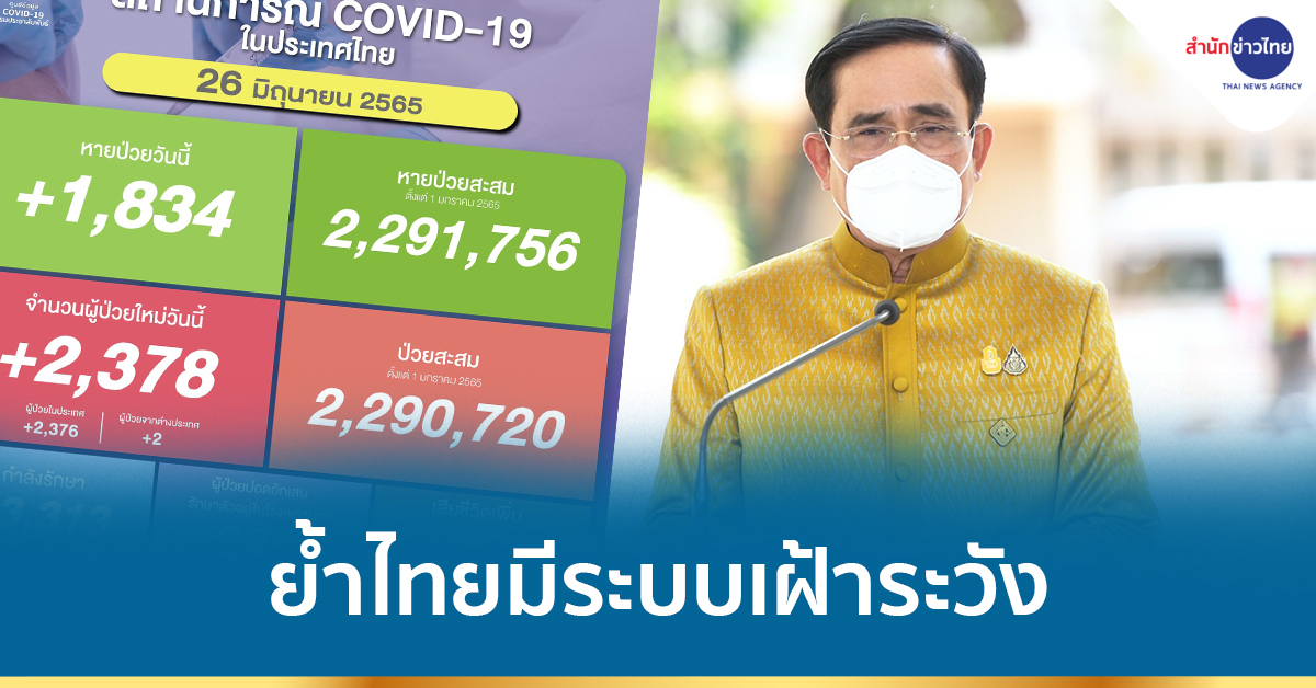 ทำเนียบ 26 มิ.ย.- นายกฯ แนะประชาชนอย่าวิตกกังวลเชื้อโควิด-19 สายพันธุ์โอไมครอน “BA.4 – BA.5” สธ.ติดตามสถานการณ์อย่างใกล้ชิด ย้ำไทยมีระบบเฝ้าระวังผู้ป่วยหนักและสายพันธุ์ย่อยต่อเนื่อง