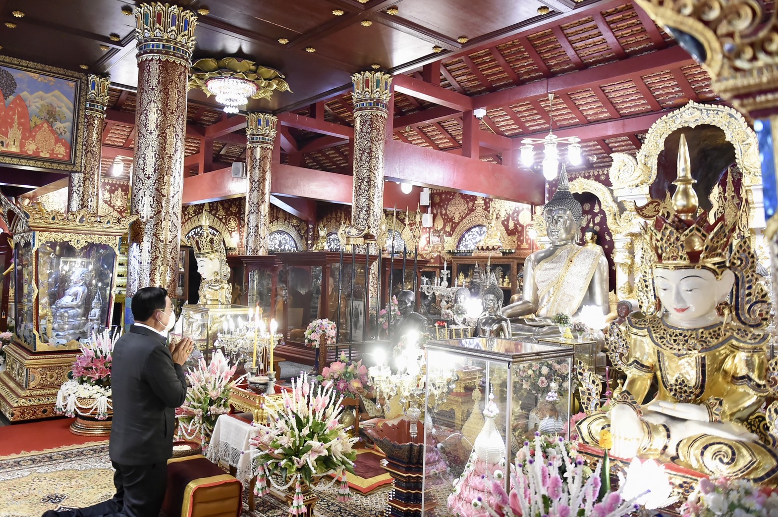 นายกรัฐมนตรี น้อมถวายกัปปิยภัณฑ์ แด่พระครูวิบูลธรรมกิจ (บัวเกตุ ปทุมสิโร) เจ้าอาวาสวัดป่าปางกึ๊ดกิตติธรรม ตำบลอินทขิล อำเภอแม่แตง จังหวัดเชียงใหม่ ซึ่งได้พักฟื้นอาการอาพาธอยู่ภายในวัดป่าดาราภิรมย์ จากนั้น นายกรัฐมนตรีนมัสการพระทันตธาตุ หรือพระเขี้ยวแก้ว และเยี่ยมชมปูชนียวัตถุสิ่งศักดิ์สิทธิ์ ซึ่งทางวัดได้จัดแสดงไว้ภายในหอแก้วชั้นบน ก่อนออกเดินทางต่อไปยังศูนย์ประชุมและแสดงสินค้านานาชาติฯ จังหวัดเชียงใหม่