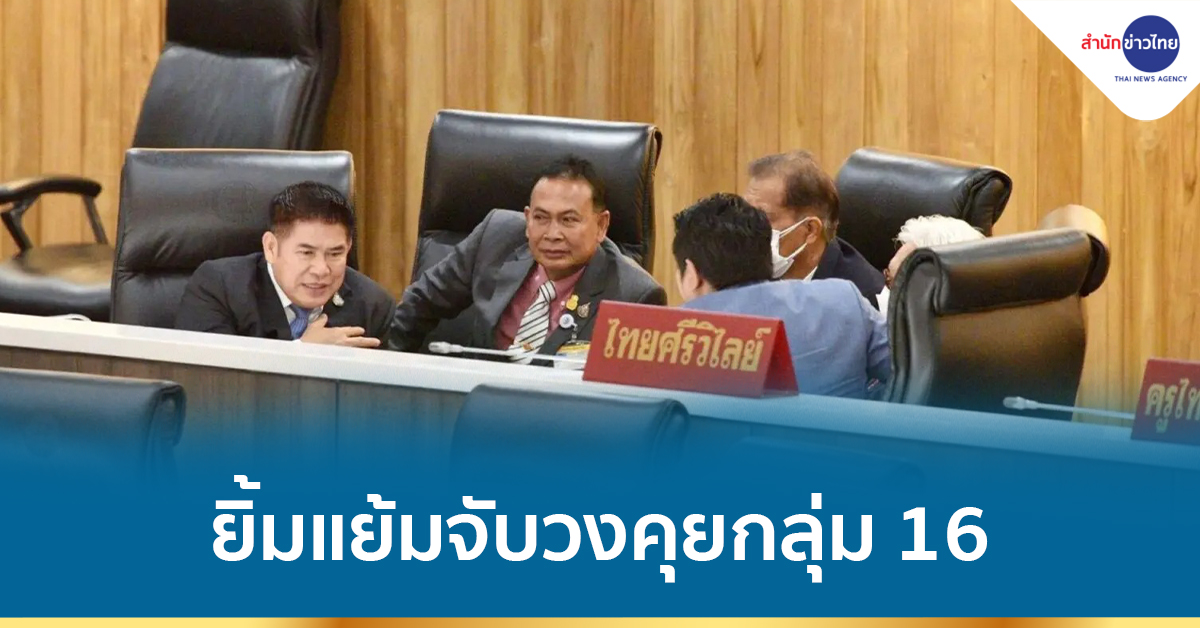 ผู้สื่อข่าวรายงานว่า ระหว่างการประชุมสภาผู้แทนราษฎรวันนี้ (30 มิ.ย.) มีช่วงหนึ่ง ร.อ.ธรรมนัส พรหมเผ่า ส.ส.พะเยา และหัวหน้าพรรคเศรษฐกิจไทยได้นั่งล้อมวงพูดคุยกับ ส.ส.พรรคเล็กกลุ่ม 16 ซึ่งประกอบด้วย นายพิเชษฐ สถิรชวาล ส.ส.บัญชีรายชื่อ พรรคพลังประชารัฐ หัวหน้ากลุ่ม 16 นายพีระวิทย์ เรื่องลือดลภาค ส.ส.บัญชีรายชื่อ หัวหน้าพรรคไทรักธรรม นายสุรทิน พิจารณ์ ส.ส.บัญชีรายชื่อ หัวหน้าพรรคประชาธิปไตยใหม่ และนายดํารงค์ พิเดช ส.ส.บัญชีรายชื่อ พรรครักษ์ผืนป่าประเทศไทย โดยมีสีหน้ายิ้มแย้มแจ่มใส ท่ามกลางกระแสข่าวการอภิปรายไม่ไว้วางใจรัฐบาล