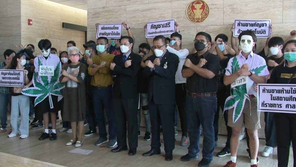 ผู้สื่อข่าวรายงานว่า องค์กรด้านเด็ก เยาวชนและครอบครัว กว่า 33 องค์กร นำโดยนางทิชา ณ นคร ผู้อำนวยการศูนย์ฝึกและอบรมเด็กและเยาวชน (ชาย) บ้านกาญจนาภิเษก สภาเด็กและเยาวชนแห่งประเทศไทย สถาบันยุวทัศน์แห่งประเทศไทย เครือข่ายเยาวชนลดปัจจัยเสี่ยง เครือข่ายสร้างเสริมสุขภาพเยาวชน เครือข่ายผู้ปกครองในสถานศึกษา มูลนิธิเพื่อการพัฒนาเด็ก มูลนิธิเด็กเยาวชนและครอบครัว เครือข่ายบางกอกดีจัง ฯลฯ เข้าพบนายศุภชัย ใจสมุทร ประธานคณะกรรมาธิการวิสามัญพิจารณาร่าง พ.ร.บ.กัญชา กัญชง พ.ศ. … เพื่อยื่นข้อเสนอต่อการพิจารณาร่าง พ.ร.บ.ดังกล่าว ทั้งนี้เครือข่ายฯ ได้ร่วมกันทำกิจกรรมเชิงสัญลักษณ์ “ปกป้องลูกหลานจากกัญชาเสรี” ด้วยการแต่งหน้าขอบตาดำ คลุมใบกัญชา (จำลอง) เพื่อสะท้อนภาพเด็กเยาวชนติดกัญชา