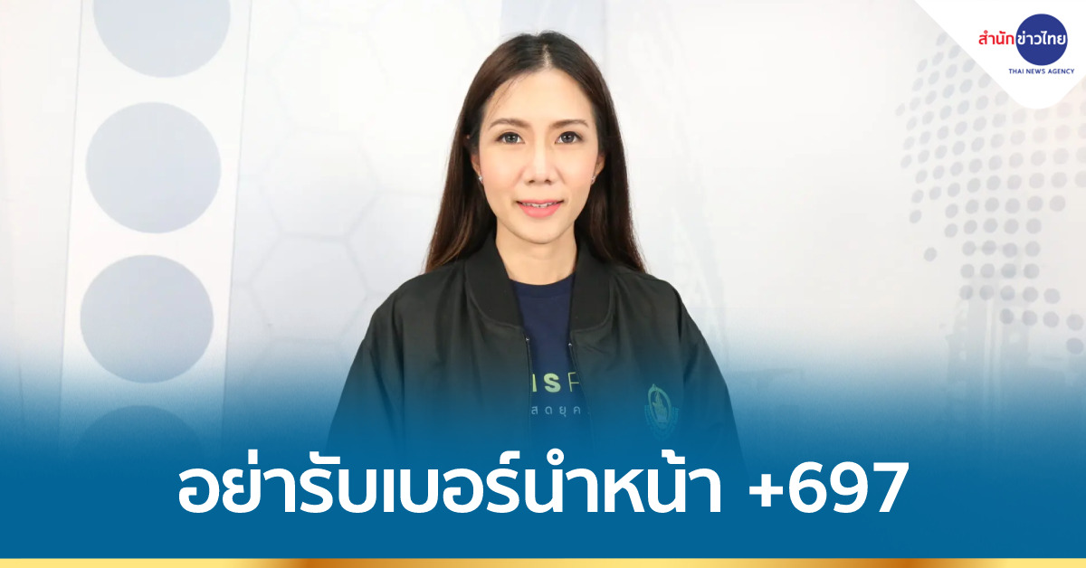 กทม. 3 ก.ค.-โฆษก DES เผย กสทช. ขอความร่วมมือผู้ให้บริการโทรศัพท์มือถือ กำหนดหมายเลข +697 นำหน้าเบอร์โทร เพื่อเป็นจุดสังเกตให้ประชาชน ป้องกันถูกหลอกลวงจากมิจฉาชีพ