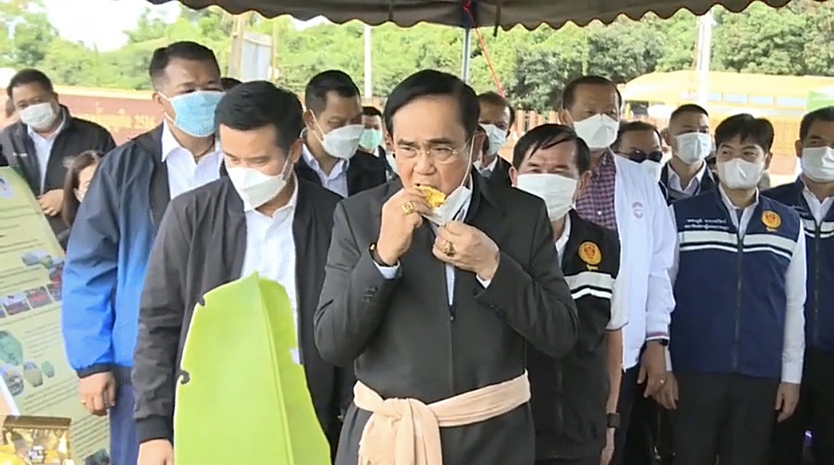 “ขอทุกคนป้องกันโรคโควิดด้วยการสวมหน้ากากอนามัย และต้องอยู่กับโรคโควิดให้ได้ โดยอยู่อย่างป้องกันและรักษาตัวเอง ยอมรับว่า ใช้เงินกู้แก้ปัญหาไปอย่างมหาศาล เพื่อดูแลทุกกลุ่มให้อยู่รอด ปลอดภัยจากโควิดและสถานการณ์เศรษฐกิจ เพื่อนำทุกคนไปสู่การอยู่อย่างยั่งยืน ขอให้เกษตรกรสอนลูกหลานให้อดทน ซึ่งผมอดทนมาแต่เด็ก ตอนเด็กไม่ได้สบาย” นายกรัฐมนตรี กล่าว