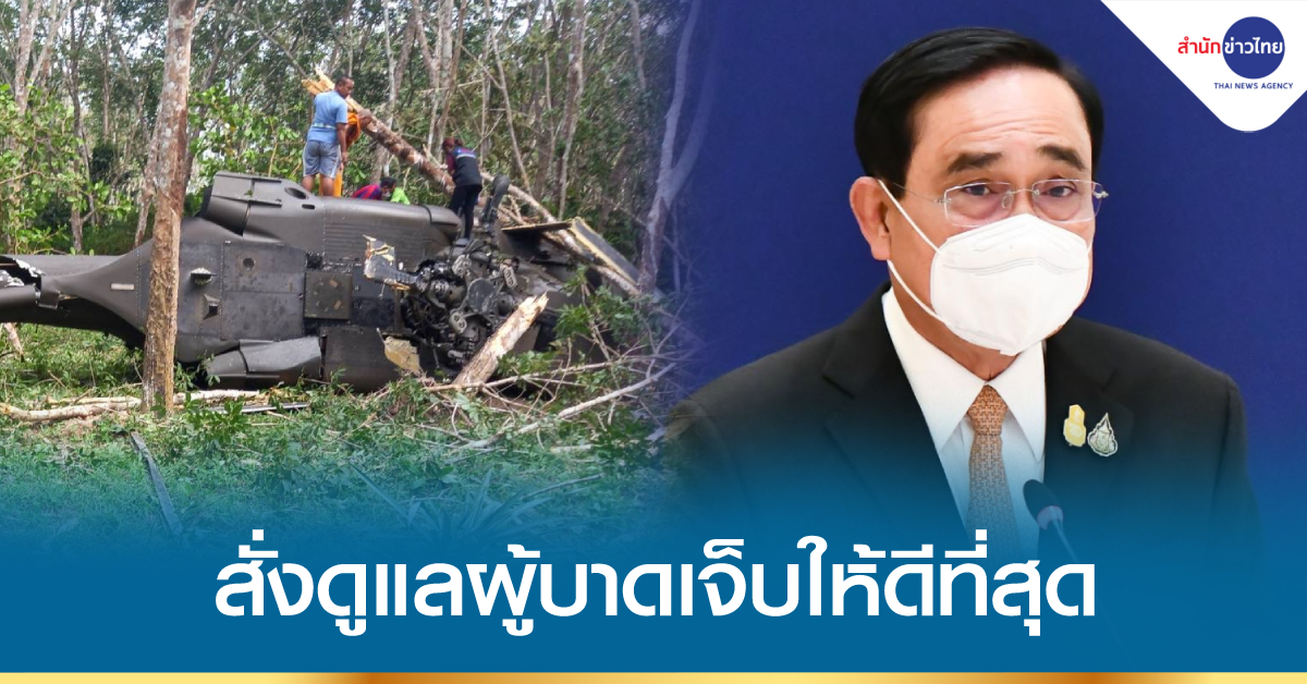 โดยนายกรัฐมนตรี และ รมว.กลาโหม ขอเป็นกำลังใจให้กับผู้ได้รับบาดเจ็บทุกนาย พร้อมสั่งการให้ กอ.รมน. และกองทัพบก เข้าไปช่วยเหลือดูแลผู้ได้รับบาดเจ็บทั้งหมดให้ดีที่สุด ส่งโรงพยาบาลในพื้นที่ และให้พิจารณาความจำเป็น หากต้องเคลื่อนย้ายผู้ป่วยส่งกลับตามสายแพทย์เข้ารับการรักษาต่อไป พร้อมทั้งขอให้ดำเนินการสอบสวนและตรวจสอบสาเหตุของอุบัติเหตุที่เกิดขึ้น และเข้าไปเก็บกู้ ฮ.ท.60 ในพื้นที่ เพื่อพิสูจน์ทราบตามหลักนิรภัยการบินต่อไป. – สำนักข่าวไทย