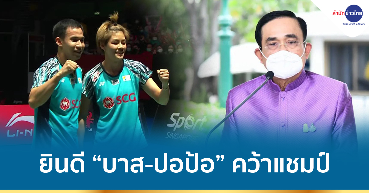 ทำเนียบรัฐบาล 18 ก.ค.-นายกฯ ร่วมยินดี “บาส-ปอป้อ” คว้าแชมป์คู่ผสมศึกแบดมินตัน Singapore Open 2022 พร้อมชื่นชมทีม “ช้างศึกไทย” ขึ้นบิลบอร์ดไทม์สแควร์