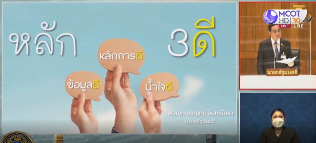 นายกรัฐมนตรีขอฝ่ายค้านให้เกียรติกลุ่ม 608 เพราะเป็นประชาชนสูงอายุที่ต้องให้ความสำคัญเรื่องสุขภาพ ยอมรับว่าไม่ใช่คนที่ฉลาดที่สุด แต่ก็ไม่ใช่ต้นเหตุความขัดแย้งของคนในชาติตลอด 10 กว่าปี พร้อมย้ำว่าไม่เคยพูดว่าจะอยู่ต่ออีก 2 ปี และขอให้ช่วยกันปฏิบัติภารกิจในครั้งนี้ด้วยหลักการ 3 ดี