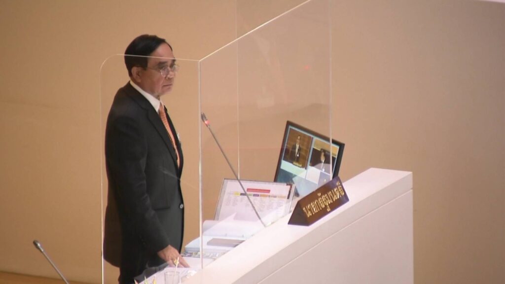 “ที่เขียนอะไรออกมา ตนพยายามที่จะระงับอารมณ์อย่างเต็มที่ คือพูดกันมาสามวัน ก็มาบอกว่ารัฐบาลใช้เวลามากเกินไป คือท่านก็จ้องที่จะเล่นงานรัฐบาลเยอะๆ รัฐบาลไม่มีโอกาสจะตอบแล้ว นั่นคือเทคติกของท่าน ผมรู้และจะใช้เวลาให้น้อยที่สุด มีอยู่คำหนึ่งที่ตนติดค้างมาตั้งแต่วันแรก ที่ท่านบอกว่า จะทำลายนั่งร้านรัฐบาลและเด็ดหัว คำพูดนี้ควรที่จะใช้ในสภาหรือทางสื่อฯหรือไม่ ตนไม่เข้าใจ วันนี้ท่านหาว่าตนนั่งอยู่ในนั่งร้าน ผมเป็นหัว ท่านก็มีนั่งร้านของท่าน แต่ท่านไม่มีหัว หัวขาดไปแล้ว” พลเอกประยุทธ์ กล่าว