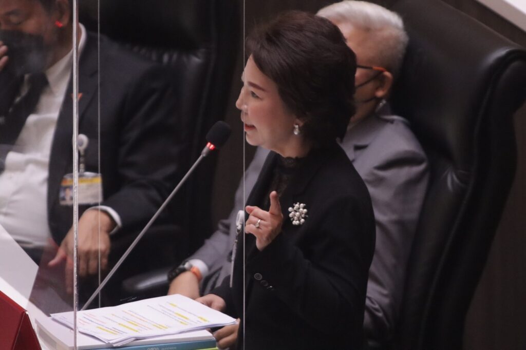 ทำให้นางอมรัตน์ ลุกขึ้นประท้วงอีกครั้งว่า นายกรัฐมนตรีได้พาดพิงโดยขอให้ถอนคำพูดทั้งสองอย่าง โดยระบุว่า มาตรา 112 เป็นมาตราร้ายแรง จะมาเที่ยวป้ายให้ใครแบบนี้ได้อย่างไร นี่ก็เอาเด็กไปเข้าคุกไม่ยอมปล่อยไม่ให้ประกัน อย่ามั่ว ซึ่งนายกรัฐมนตรี ได้พูดสวนกลับมาว่า “ผมไม่ได้ป้าย ผมไม่ได้ไปยุ่งอะไรกับกระบวนการ” ทำให้นางอมรัตน์ ลุกขึ้นกล่าวอย่างมีอารมณ์ว่า ขอให้นายกรัฐมนตรีถอนคำพูด โดยนายกรัฐมนตรี ได้สวนกลับว่า “ผมไม่ถอน” ทำให้นายชวน หลีกภัย ประธานสภาผู้แทนราษฎร ทำหน้าที่ประธานการประชุม ต้องปิดไมโครโฟนของนางอมรัตน์ อีกครั้ง และกล่าวว่า ขอให้ฟังประธาน โดยนายชวนกล่าวว่า เราอภิปรายเขาก็หนัก เพราะฉะนั้นก็ไม่มีอะไรที่จะต้องถอน โดยขอให้นายกรัฐมนตรี นั้นอภิปรายต่อ และตนคิดว่าดีที่สุดคือเราต้องระมัดระวัง.-สำนักข่าวไทย.