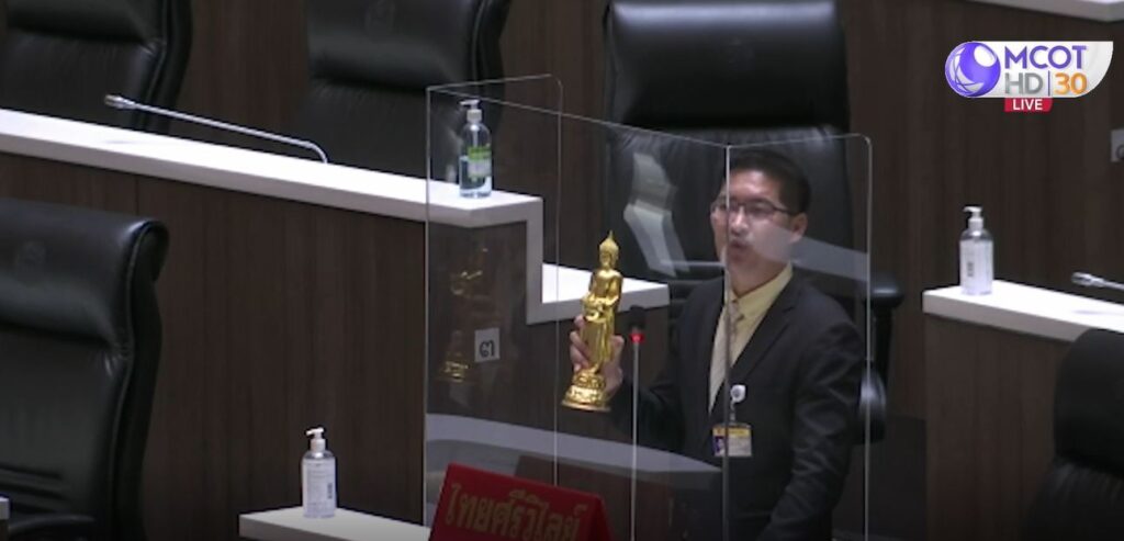 ขณะที่วันนี้นายกรัฐมนตรีได้ลุกขึ้นชี้แจงและมีการตอบโต้กับ ส.ส.พรรคก้าวไกล ที่นาง อมรัตน์ โชคปมิตต์กุล อภิปรายโจมตีเรื่องการทุจริตในกระทรวงกลาโหม และกล่าวหาทำลายระบอบประชาธิปไตย พร้อมมอบกระจกให้นายกฯ บอกว่าประชาชนไม่สามารถสะท้อนความเห็นได้