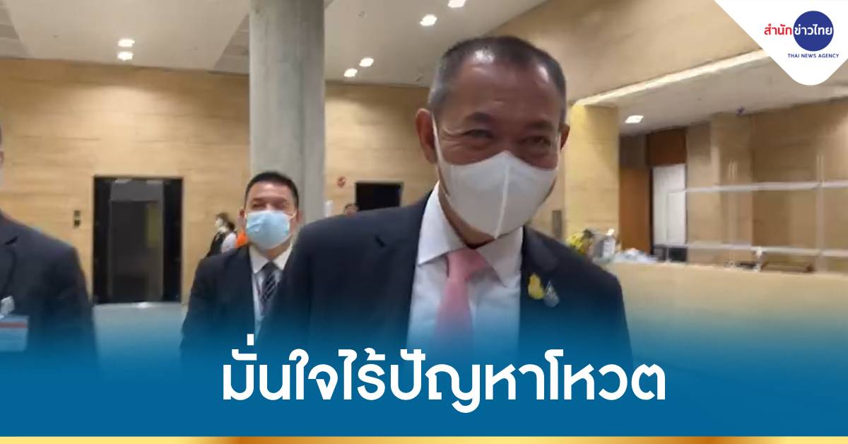 เมื่อถามว่า มั่นใจหรือไม่ว่าการโหวต 2 รัฐมนตรีของพรรคประชาธิปัตย์คือ นายจุติ และนายนิพนธ์ บุญญามณี รมช.มหาดไทย และรองหัวหน้าพรรคประชาธิปัตย์จะไม่มีปัญหา นายเฉลิมชัยพยักหน้า.-สำนักข่าวไทย