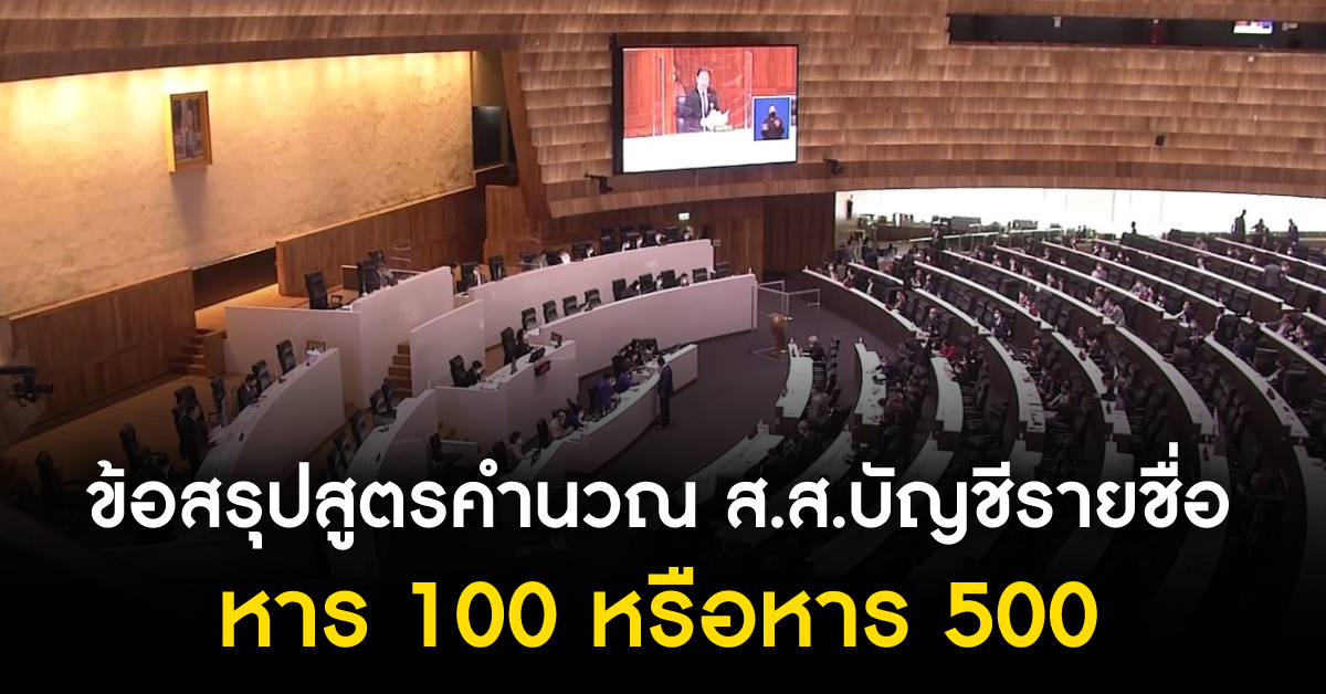 ข้อสรุปสูตรคำนวณ ส.ส.บัญชีรายชื่อ หาร 100 หรือหาร 500