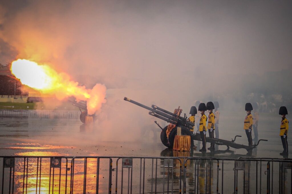 ขณะกองทัพบก ยิงสลุต 21 นัด เฉลิมพระเกียรติเนื่องในโอกาสวันเฉลิมพระชนมพรรษาพระบาทสมเด็จพระเจ้าอยู่หัว 70 พรรษา 28 กรกฎาคม 2565 โดย กรมทหารปืนใหญ่ที่ 1 รักษาพระองค์ ณ บริเวณท้องสนามหลวง