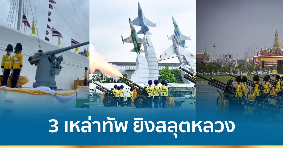 กรุงเทพฯ 28 ก.ค. – 3 เหล่าทัพ ยิงสลุตหลวงเฉลิมพระเกียรติ พระบาทสมเด็จพระเจ้าอยู่หัว เนื่องในโอกาสวันเฉลิมพระชนมพรรษา 70 พรรษา 28 กรกฎาคม 2565