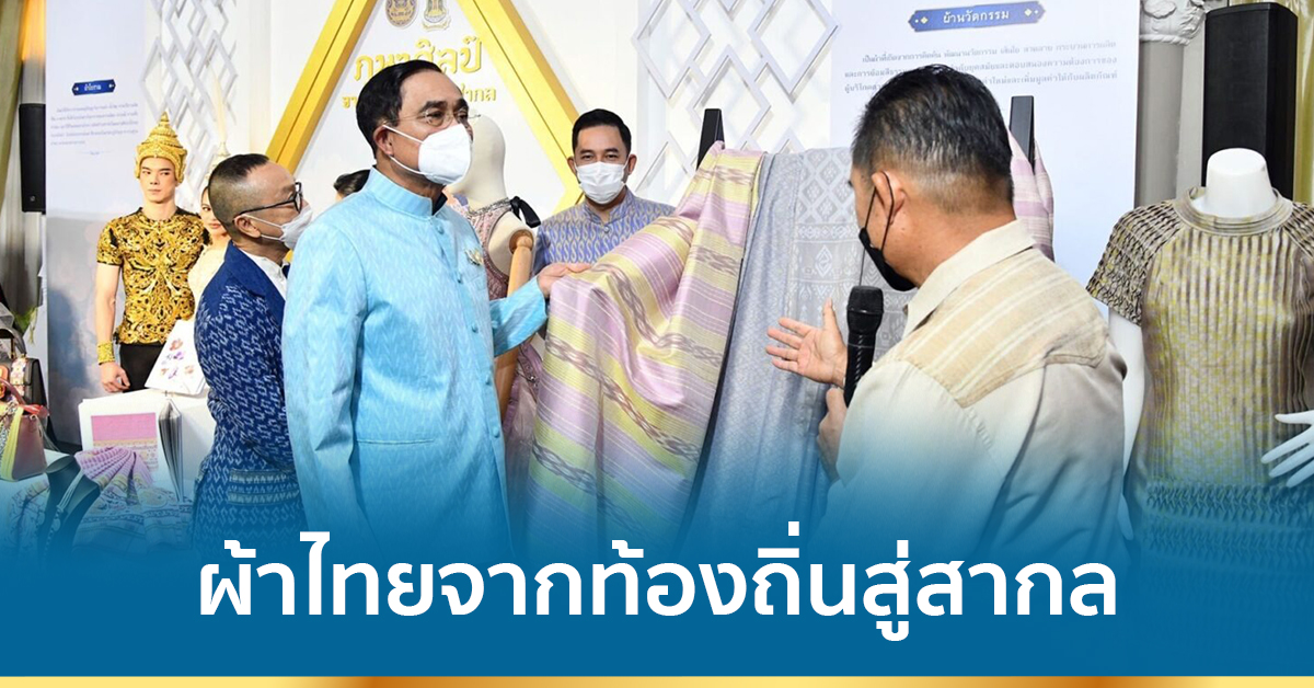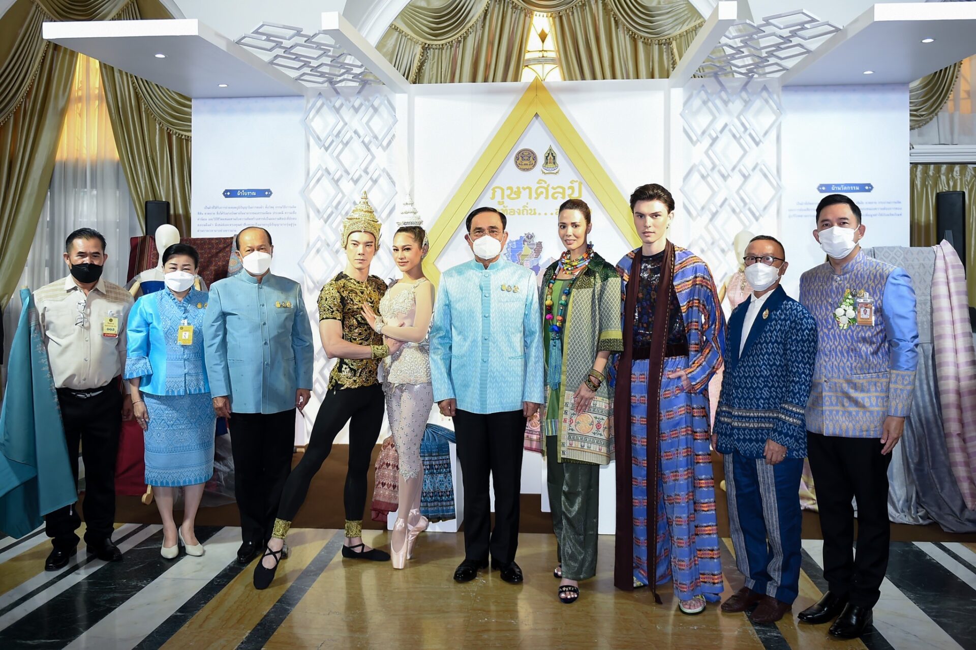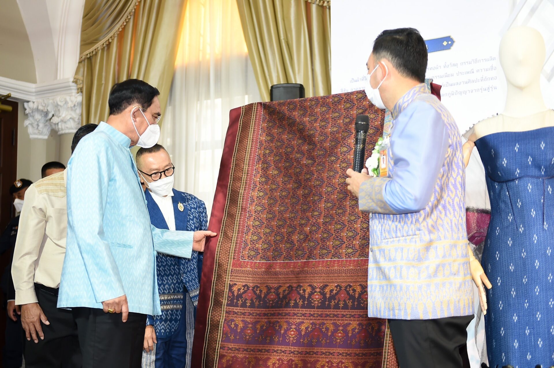 นายกรัฐมนตรี ชมผ้าโบราณและผ้าไทยลายอัตลักษณ์ 4 ภาค ผลิตภัณฑ์วัฒนธรรมไทย (CPOT) ที่ผลิตจากผ้า ผลงานนวัตกรรมผ้าไทย หนังสือ “ภูษาศิลป์ จากท้องถิ่นสู่สากล” รวมถึงการแสดงแบบผ้าไทยด้วยความสนใจ พร้อมชื่นชมผู้ผลิต ผู้ประกอบการ และนักออกแบบที่นำความรู้มาสร้างสรรค์ผลงานได้หลากหลายรูปแบบ ผสมผสานกับเทคโนโลยีและนวัตกรรมจนมีความสวยงาม และประณีต เช่น กระเป๋า เครื่องแต่งกาย เครื่องประดับต่าง ๆ เป็นต้น อีกทั้งยังคงความเป็นเอกลักษณ์ของแต่ละท้องถิ่นได้อย่างน่าภาคภูมิใจ โดยขอให้ศึกษา พัฒนาและเผยแพร่การดูแลรักษาผ้าไทยที่ง่ายและสะดวกมากขึ้น รวมทั้งพิจารณาเรื่องราคาให้ถูกลง เพื่อเป็นส่วนช่วยส่งเสริมการใช้ผ้าไทยให้แพร่หลายในประชาชนทุกกลุ่ม ซึ่งจะเป็นการสืบสาน รักษาและส่งเสริมผ้าไทยให้เป็นที่รู้จักในระดับท้องถิ่นสู่สากลได้อีกทางหนึ่งด้วย