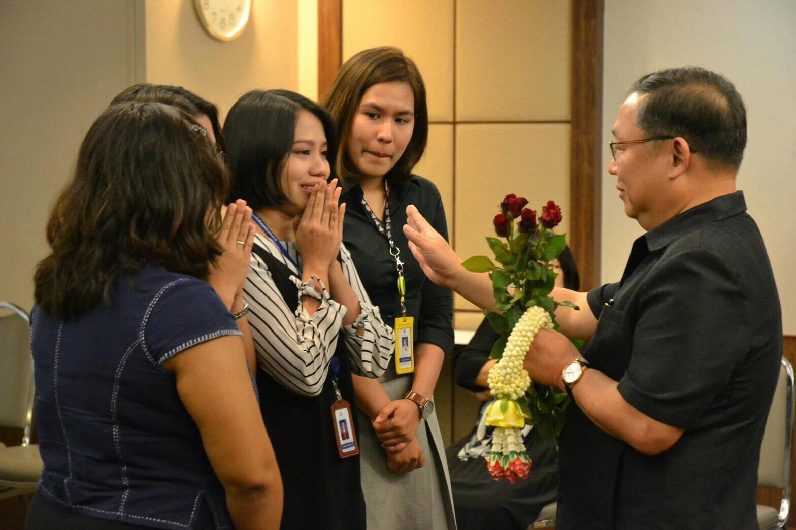 จากนั้นกรรมการสิทธิ และผู้บริหาร ได้มอบดอกไม้เพื่อแสดงความอาลัยกับ นพ.สุรเชรษฐ์ โดยเจ้าหน้าที่จำนวนมากต่างก็ร้องไห้ ก่อนที่จะถ่ายรูปร่วมกันเป็นที่ระลึก.-สำนักข่าวไทย