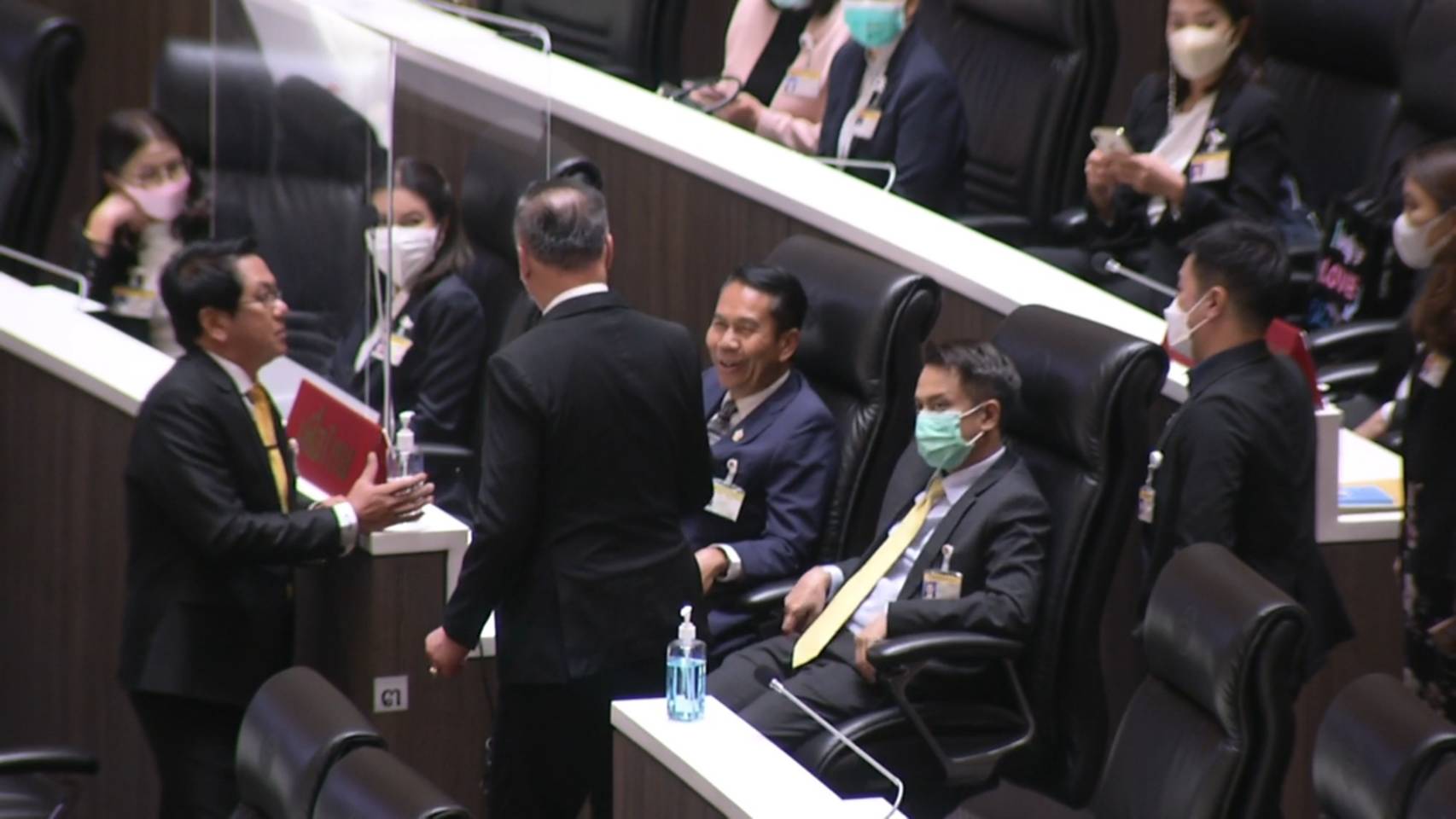 ผู้สื่อข่าวรายงานว่า ที่ประชุมยังคงถกเถียงในประเด็นดังกล่าว และมี ส.ส.พลังประชารัฐ เสนอญัตติให้พิจารณาตามวาระปกติ ขณะที่นายชาดา ไทยเศรษฐ์ ส.ส.อุทัยธานี พรรรคภูมิใจไทย กล่าวว่า ตนไม่อยากให้เกิดความขัดแย้ง และเข้าใจเหตุผลของฝ่ายค้าน แต่ขณะนี้ต้องคำนึงว่าจะเหมาะสมหรือก้าวล่วงศาลหรือไม่ ซึ่งตามที่ตกลงคือ จะพิจารณาญัตติเรื่องเงินกู้ ซึ่งตนเตรียมมา แต่เมื่อเจอแบบนี้เหมือนถูกหลอก