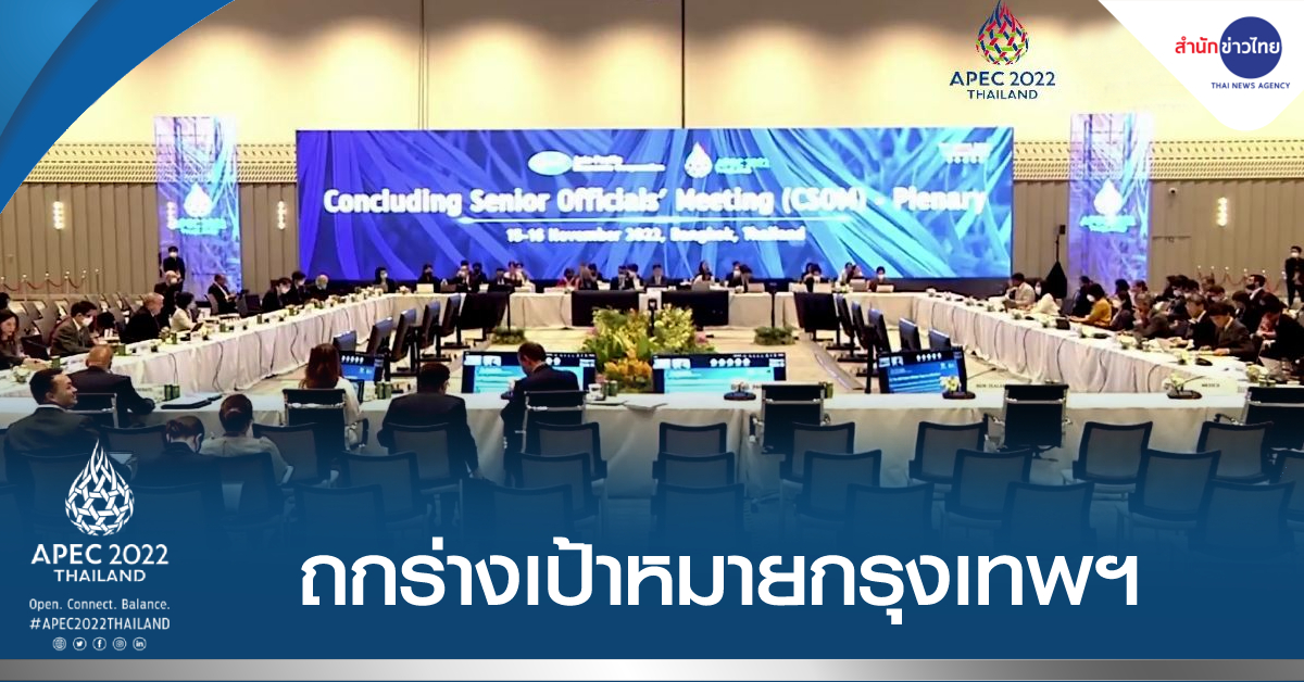 ศูนย์ฯ สิริกิติ์ 16 พ.ย. – ที่ประชุมระดับเจ้าหน้าที่อาวุโสเอเปค ครั้งสุดท้าย ช่วงที่ 3 ที่ประชุมรับทราบสถานะล่าสุดของร่างเอกสารเป้าหมายกรุงเทพฯ ว่าด้วยเศรษฐกิจ BCG โดยผลการหารือของที่ประชุมระดับเจ้าหน้าที่อาวุโสเอเปค จะถูกนำเสนอเข้าสู่ที่ประชุมระดับรัฐมนตรีเอเปค เพื่อพิจารณา ก่อนจะนำเสนอเข้าสู่ที่ประชุมผู้นำเขตเศรษฐกิจเอเปค เพื่อรับรองต่อไป. – สำนักข่าวไทย