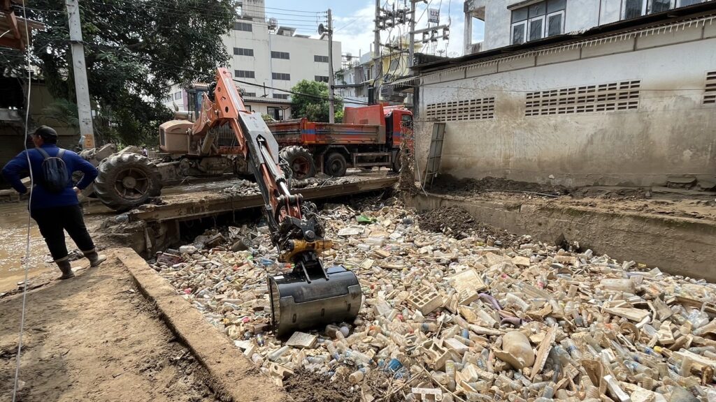 ปภ. 12 ต.ค. – ทีมปฏิบัติการ ปภ. ระดมเจ้าหน้าที่และเครื่องจักรกลสาธารณภัยจากศูนย์ป้องกันและบรรเทาสาธารณภัยเขต จำนวน 4 ศูนย์ ปภ. เขต เร่งปฏิบัติการบรรเทาความเดือดร้อนของประชาชนที่ได้รับผลกระทบจากอุทกภัย และฟื้นฟูคืนพื้นที่ อ.แม่สาย และ อ.เมือง จ.เชียงราย