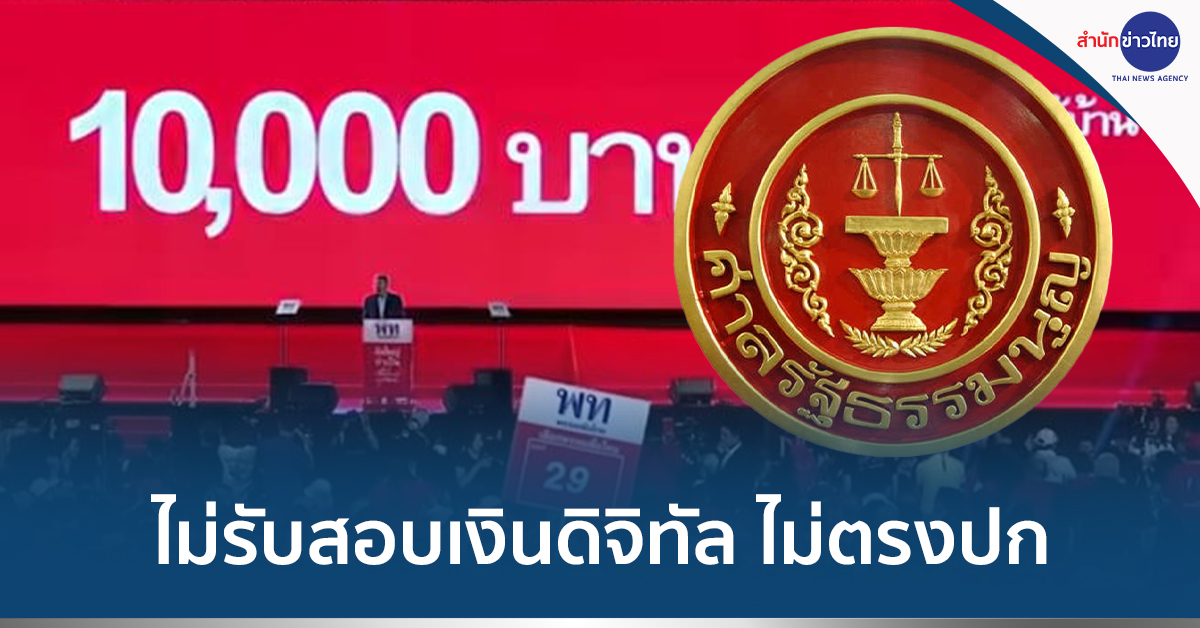 ศาลรัฐธรรมนูญ 18 ธ.ค.- มติเอกฉันท์ศาลรัฐธรรมนูญไม่รับสอบนโยบาย “ดิจิทัลวอลเล็ต” ไม่ตรงปก ชี้ยังไม่เข้าเงื่อนไขและละเมิดสิทธิเสรีภาพ